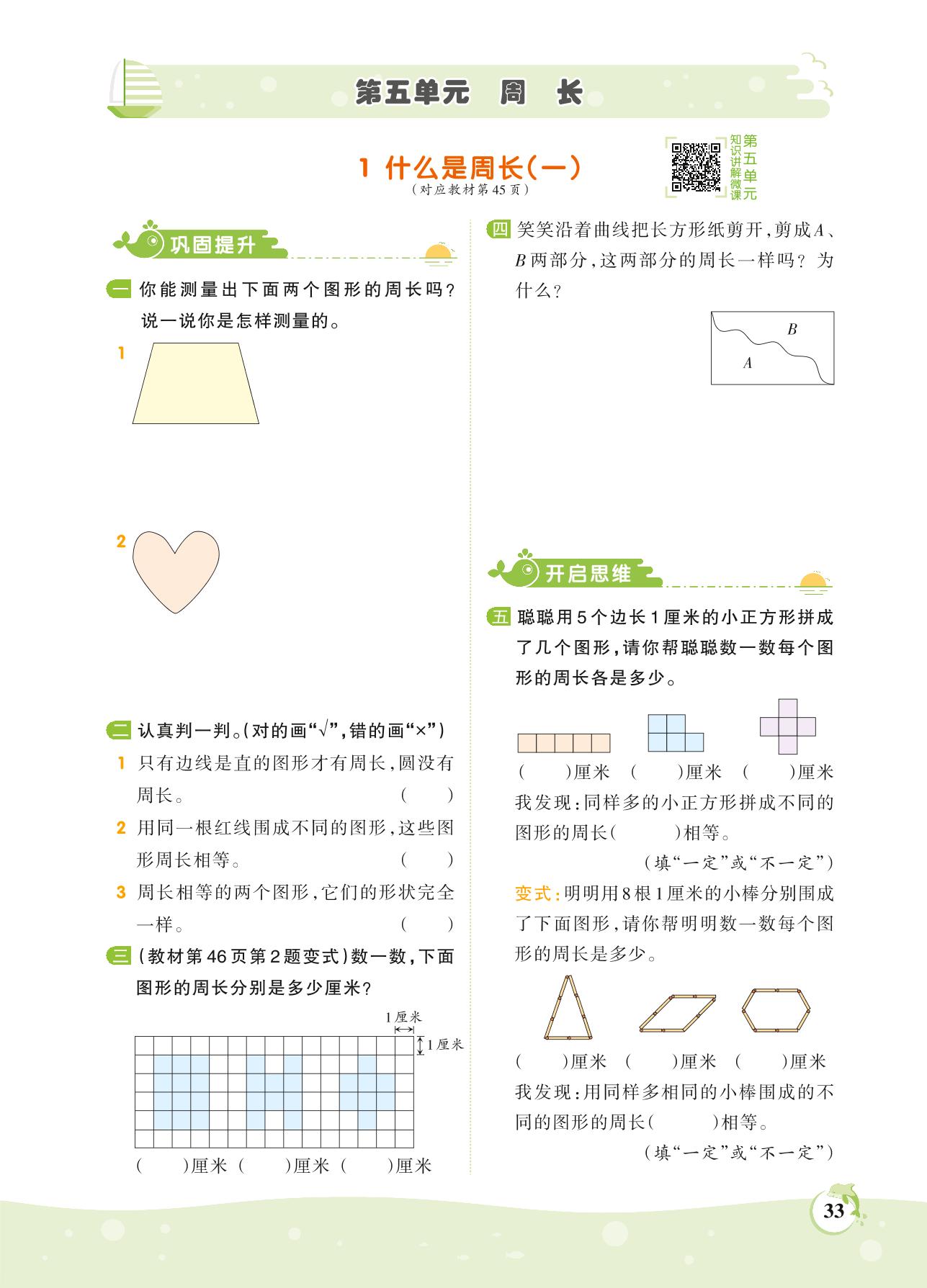 2021上册三年级数学北师版 第五单元 周长——1 什么是周长(一)