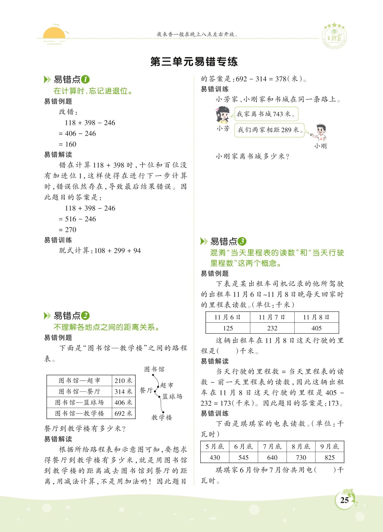 2021上册三年级数学北师版 第三单元 加与减——第三单元易错专练