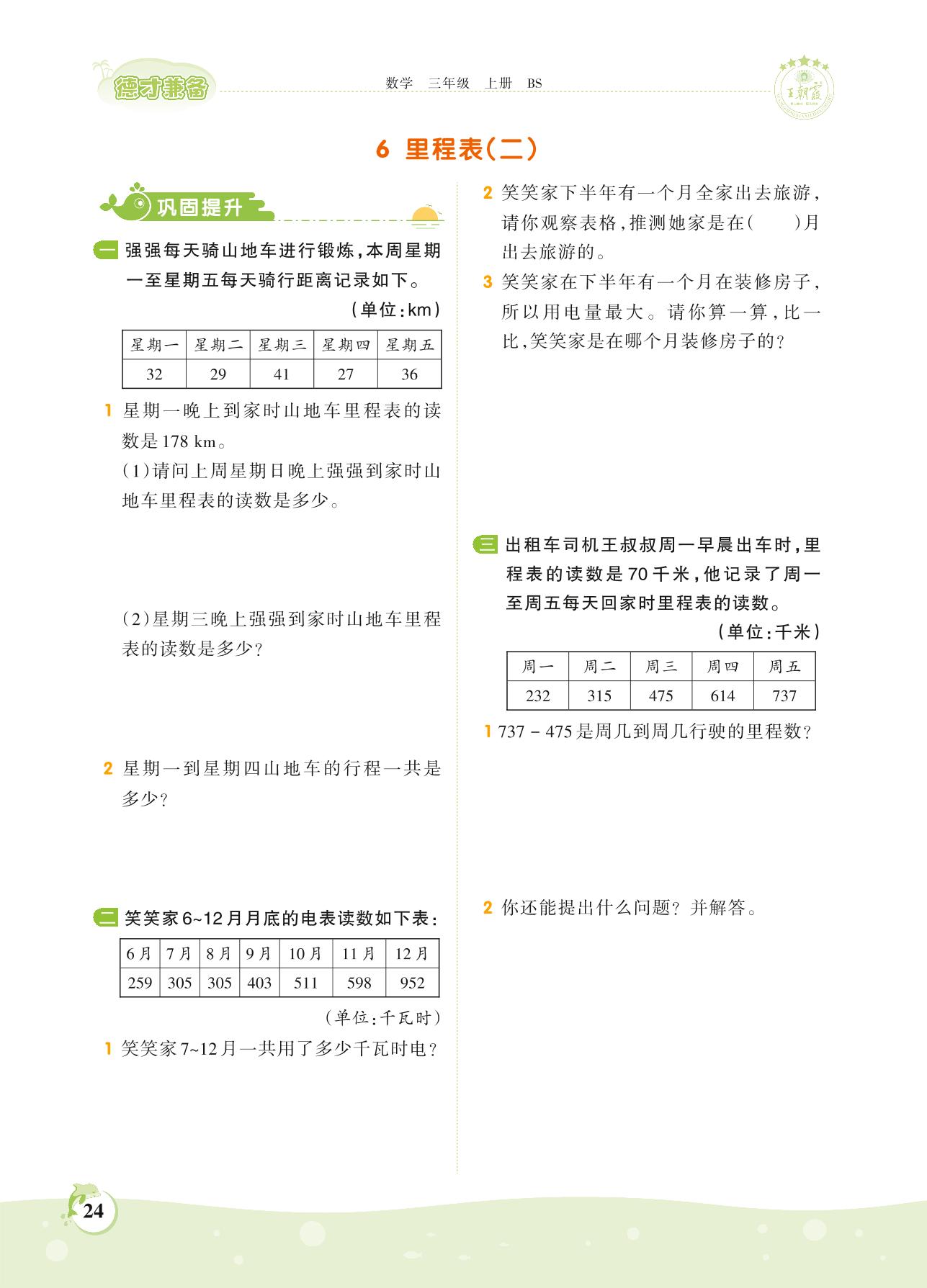 2021上册三年级数学北师版 第三单元 加与减——6 里程表(二)