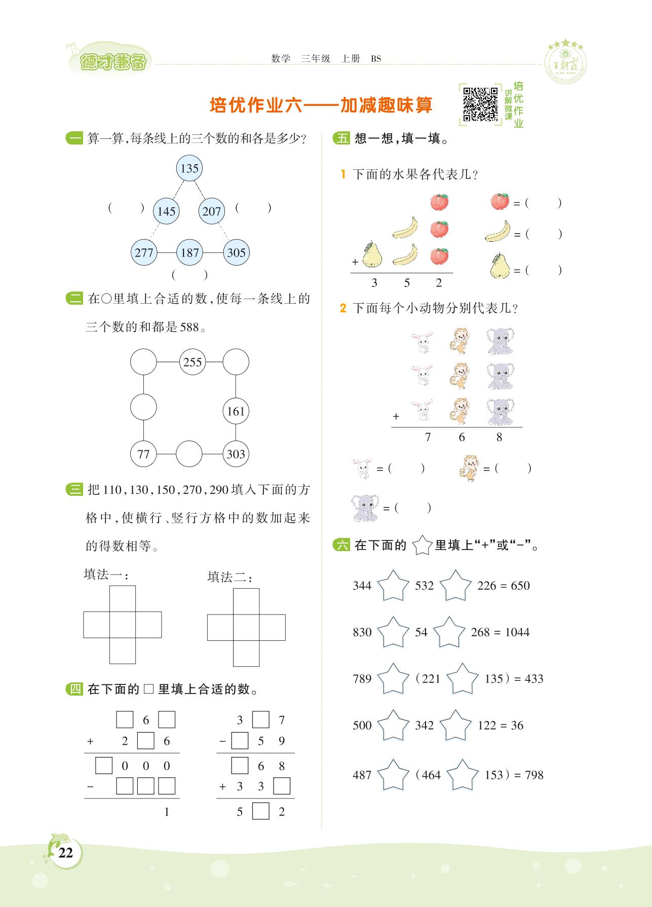 2021上册三年级数学北师版 第三单元 加与减——培优作业六 加减趣味算