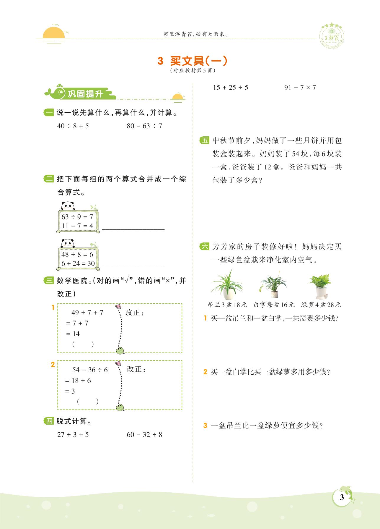 2021上册三年级数学北师版 第一单元 混合运算——3 买文具(一)