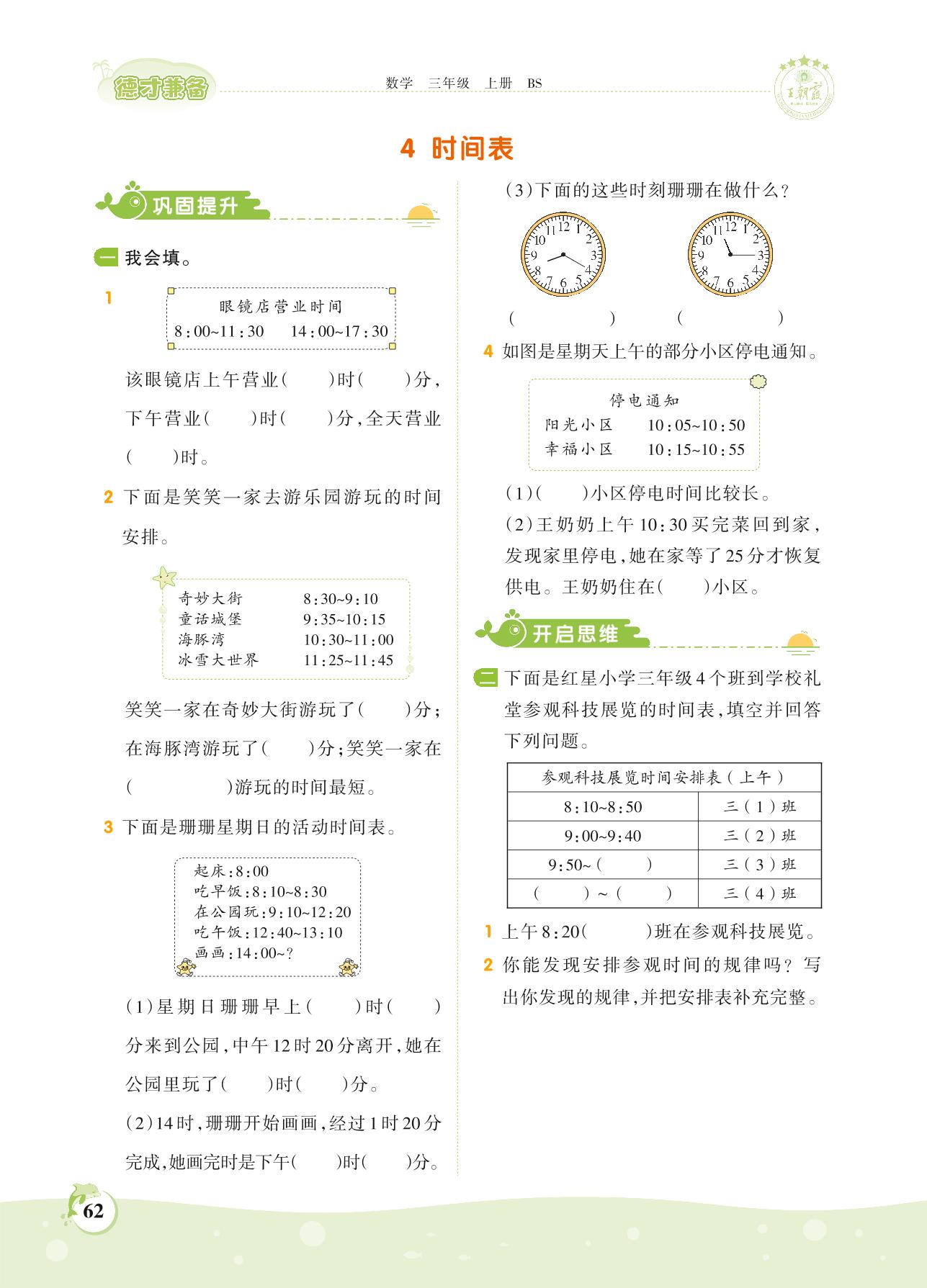 2021上册三年级数学北师版 第七单元 年、月、日——4 时间表