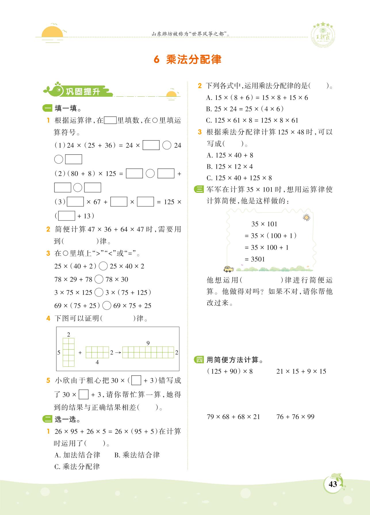 2021上册四年级数学北师版 第四单元 运算律——6 乘法分配律