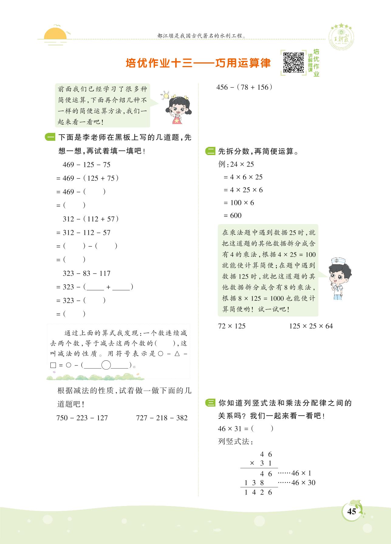 2021上册四年级数学北师版 第四单元 运算律——培优作业十三 巧用运算律