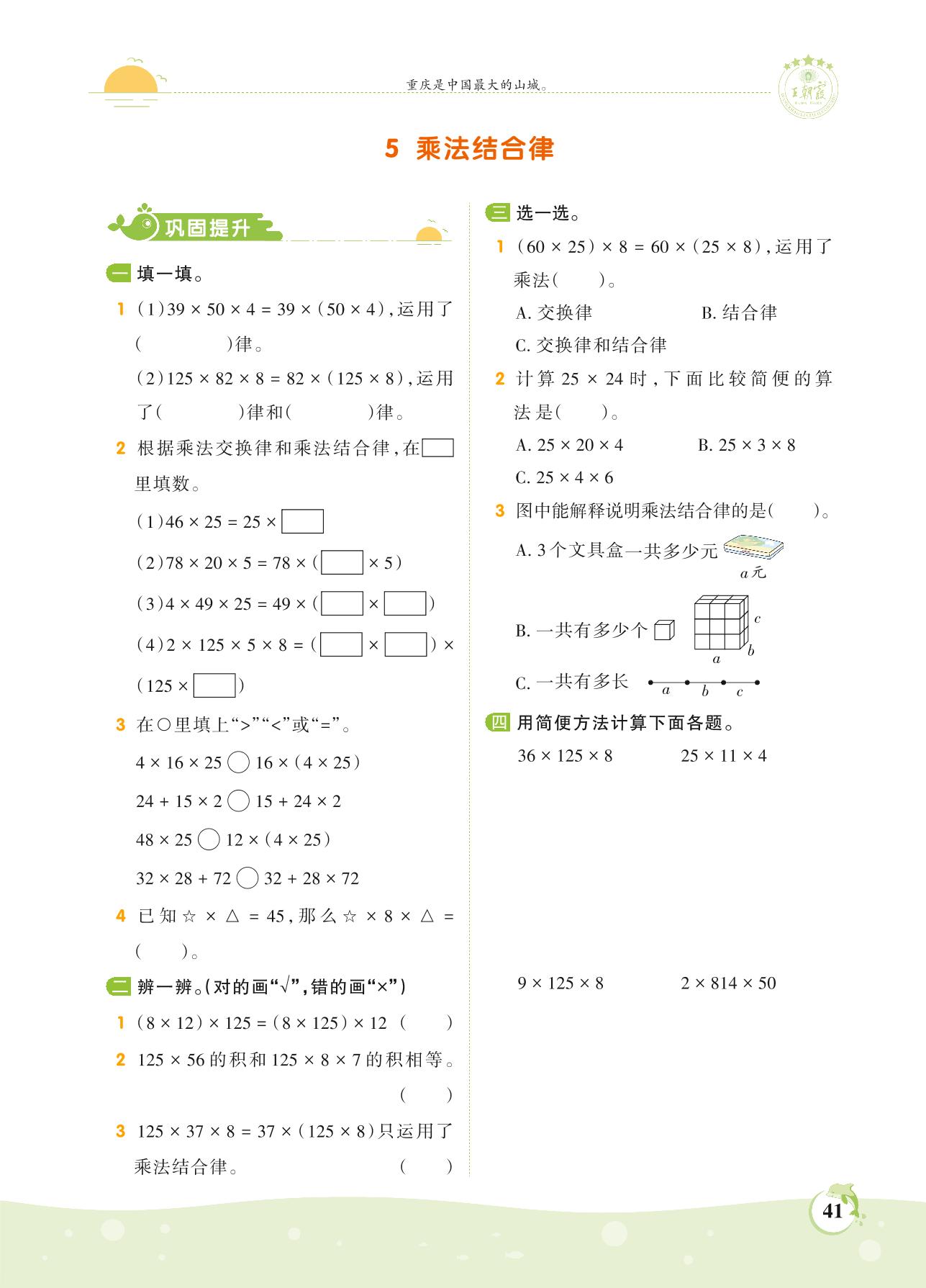 2021上册四年级数学北师版 第四单元 运算律——5 乘法结合律