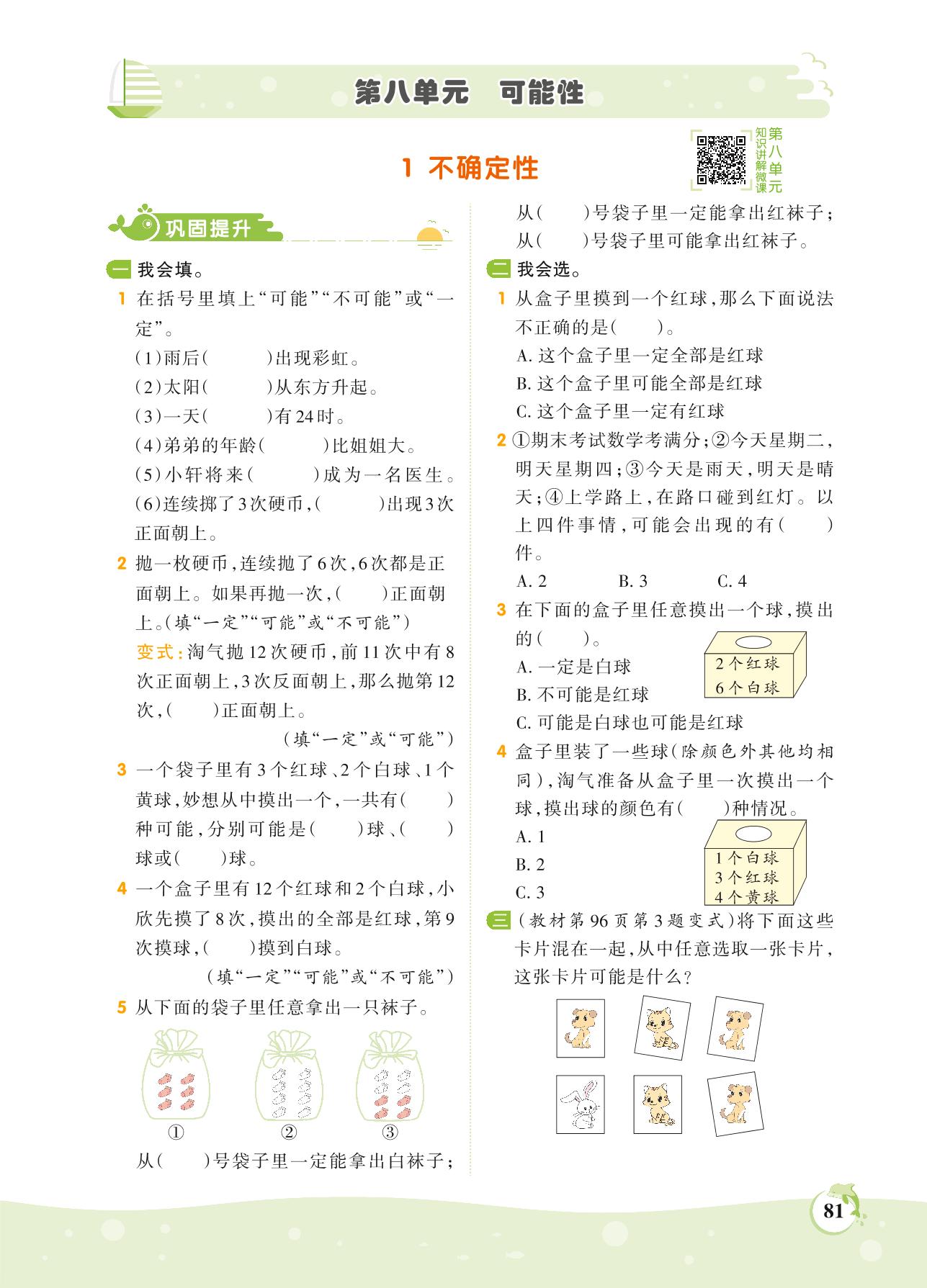 2021上册四年级数学北师版 第八单元 可能性——1 不确定性