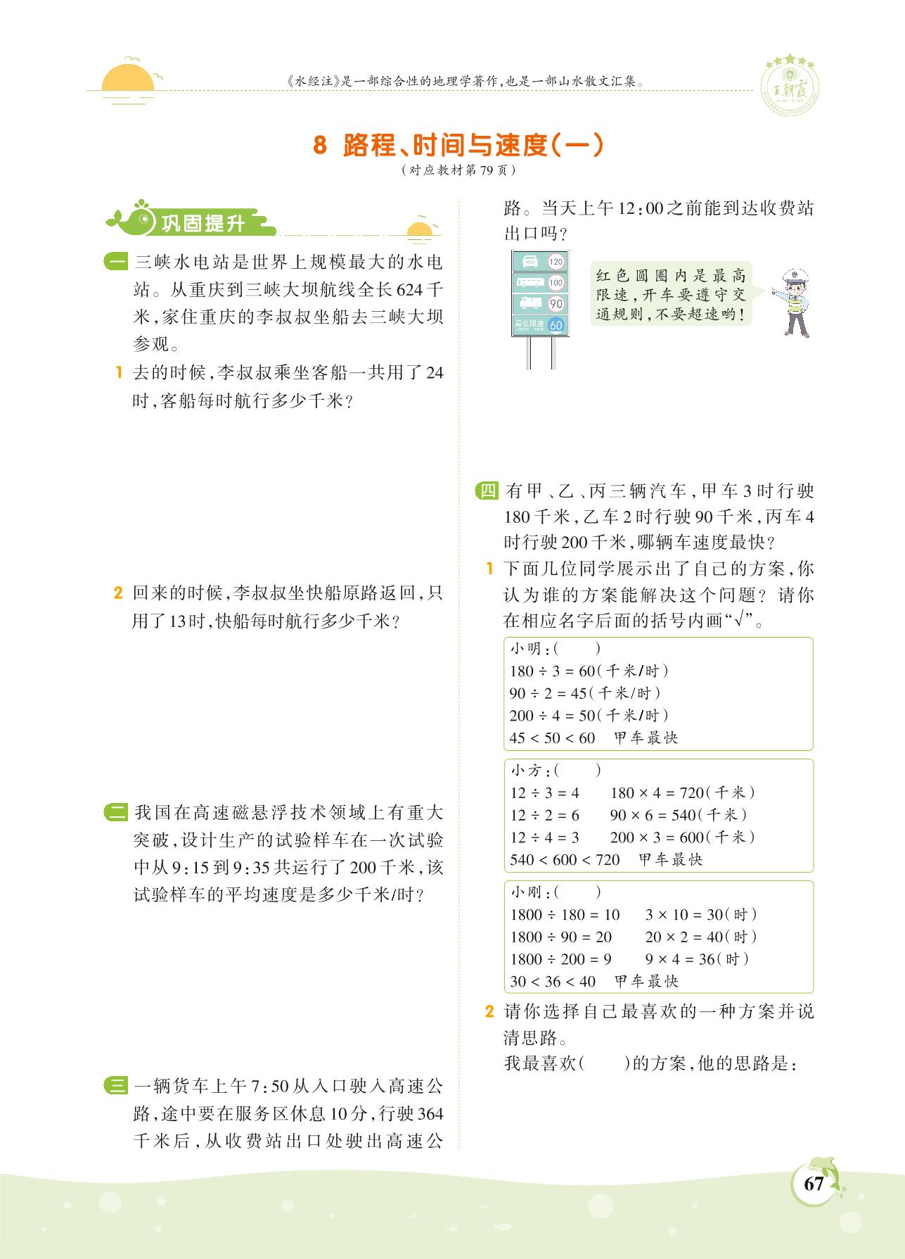 2021上册四年级数学北师版 第六单元 除法——8 路程、时间与速度(一)