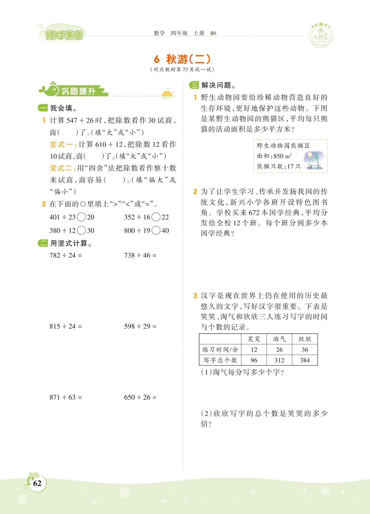 2021上册四年级数学北师版 第六单元 除法——6 秋游(二)