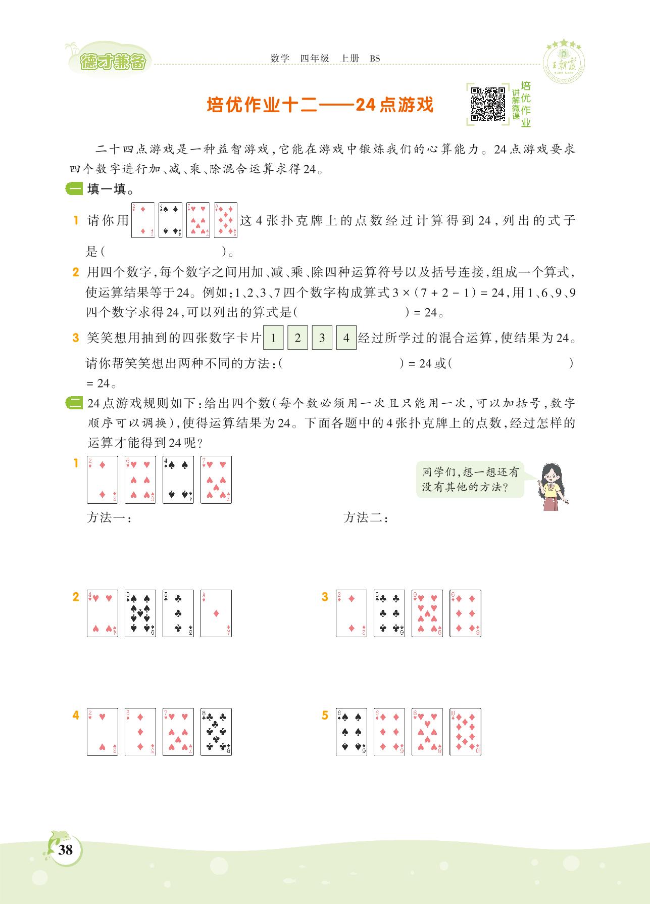 2021上册四年级数学北师版 第四单元 运算律——培优作业十二 24点游戏