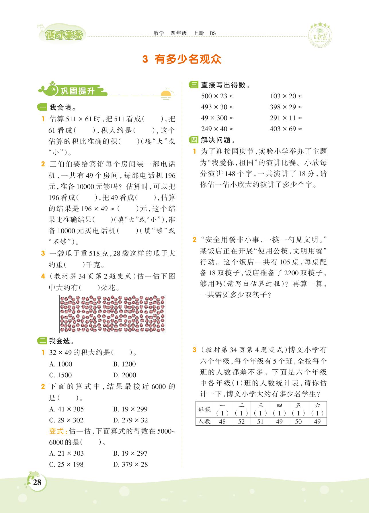 2021上册四年级数学北师版 第三单元 乘法——3 有多少名观众