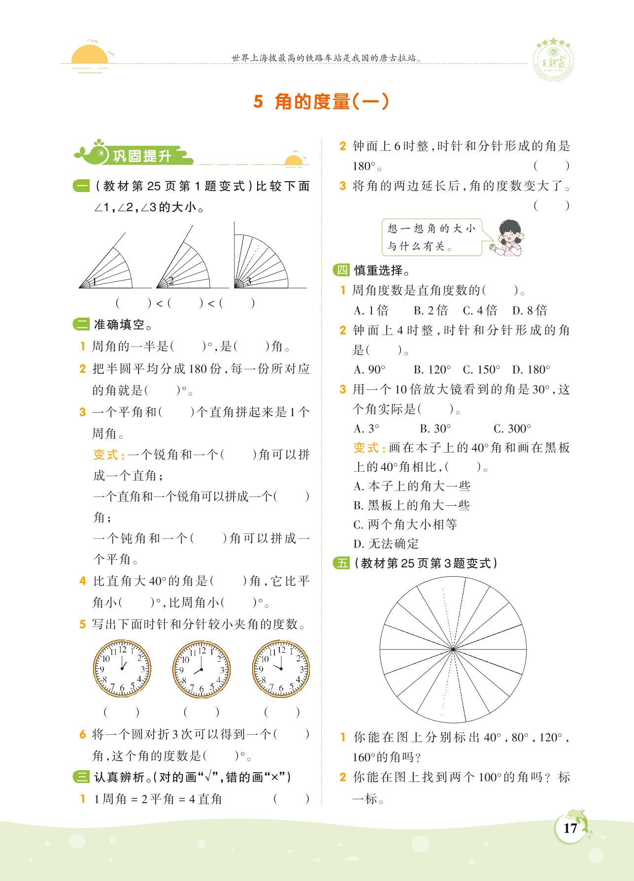 2021上册四年级数学北师版 第二单元 线与角——5 角的度量(一)