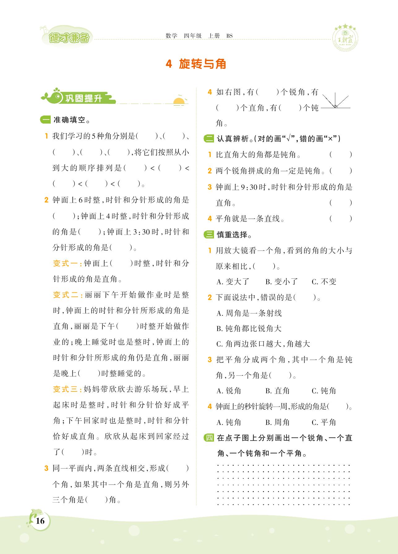 2021上册四年级数学北师版 第二单元 线与角——4 旋转与角