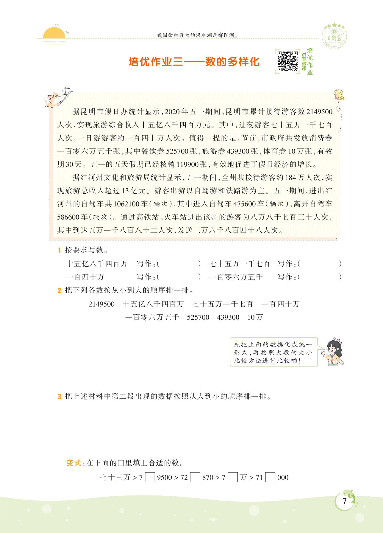 2021上册四年级数学北师版 第一单元 认识更大的数——培优作业三 数的多样化