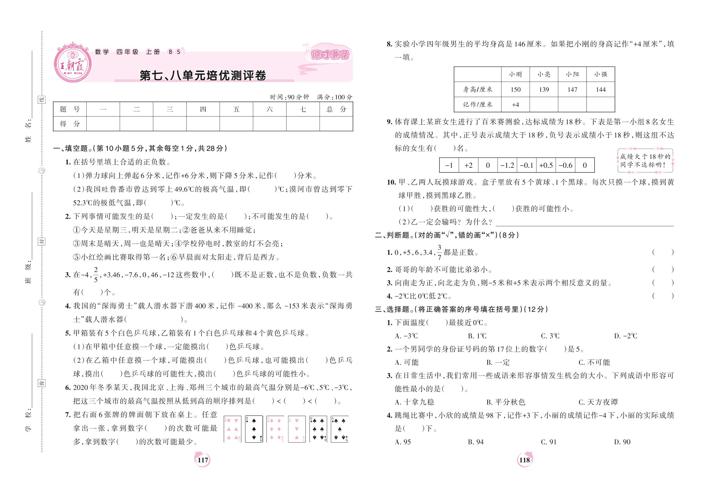 2021上册四年级数学北师版 第七、八单元培优测评卷