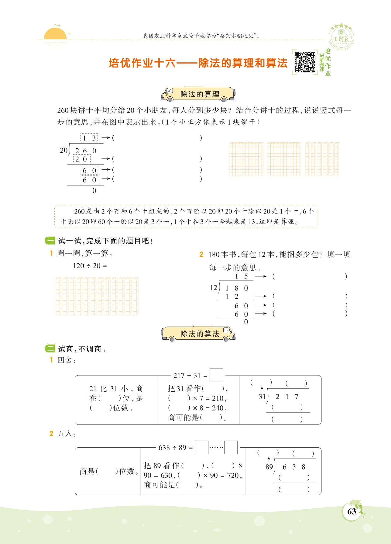 2021上册四年级数学北师版 第六单元 除法——培优作业十六 除法的算理和算法