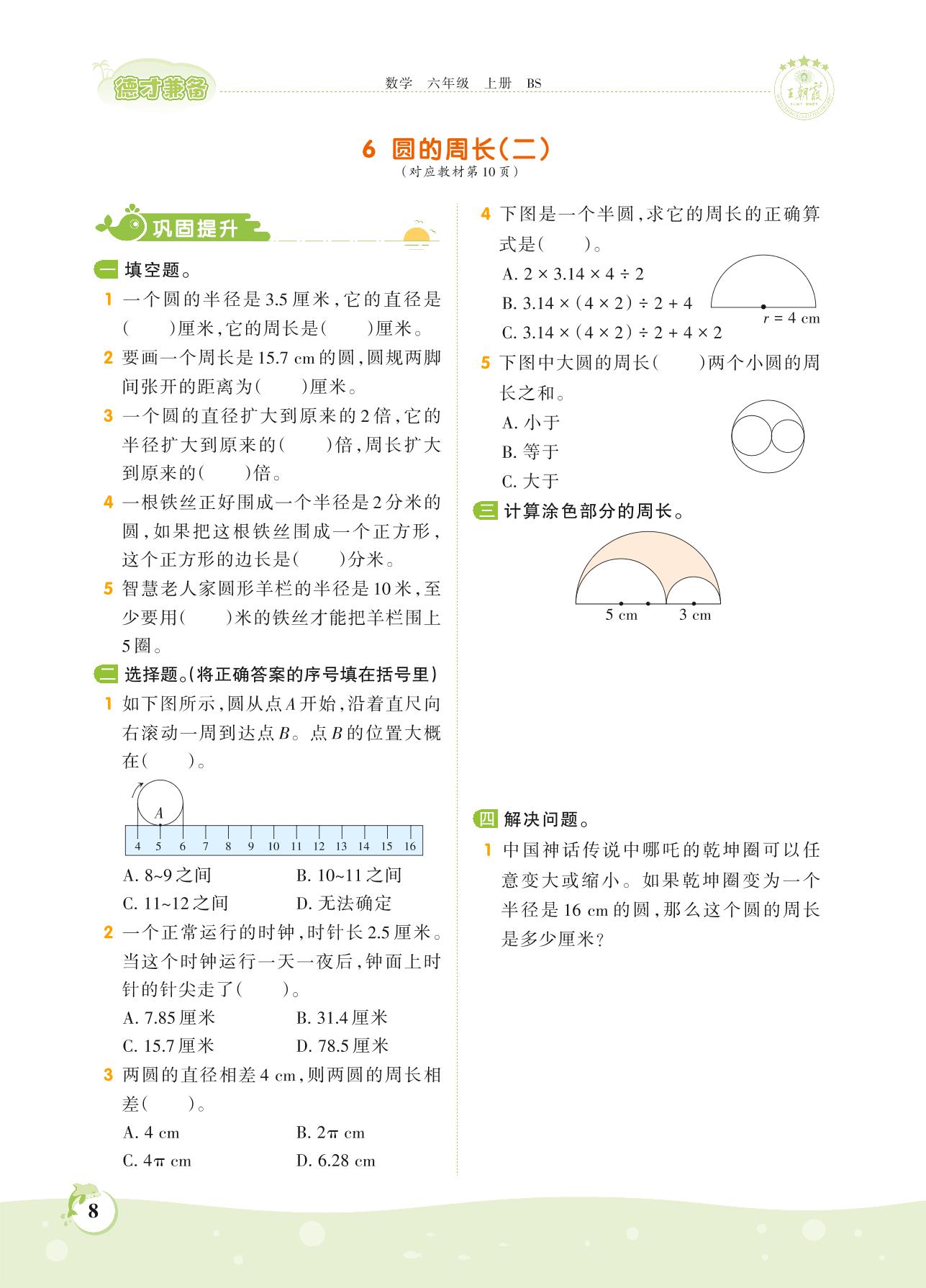 2021上册六年级数学北师版 第一单元 圆——6 圆的周长(二)