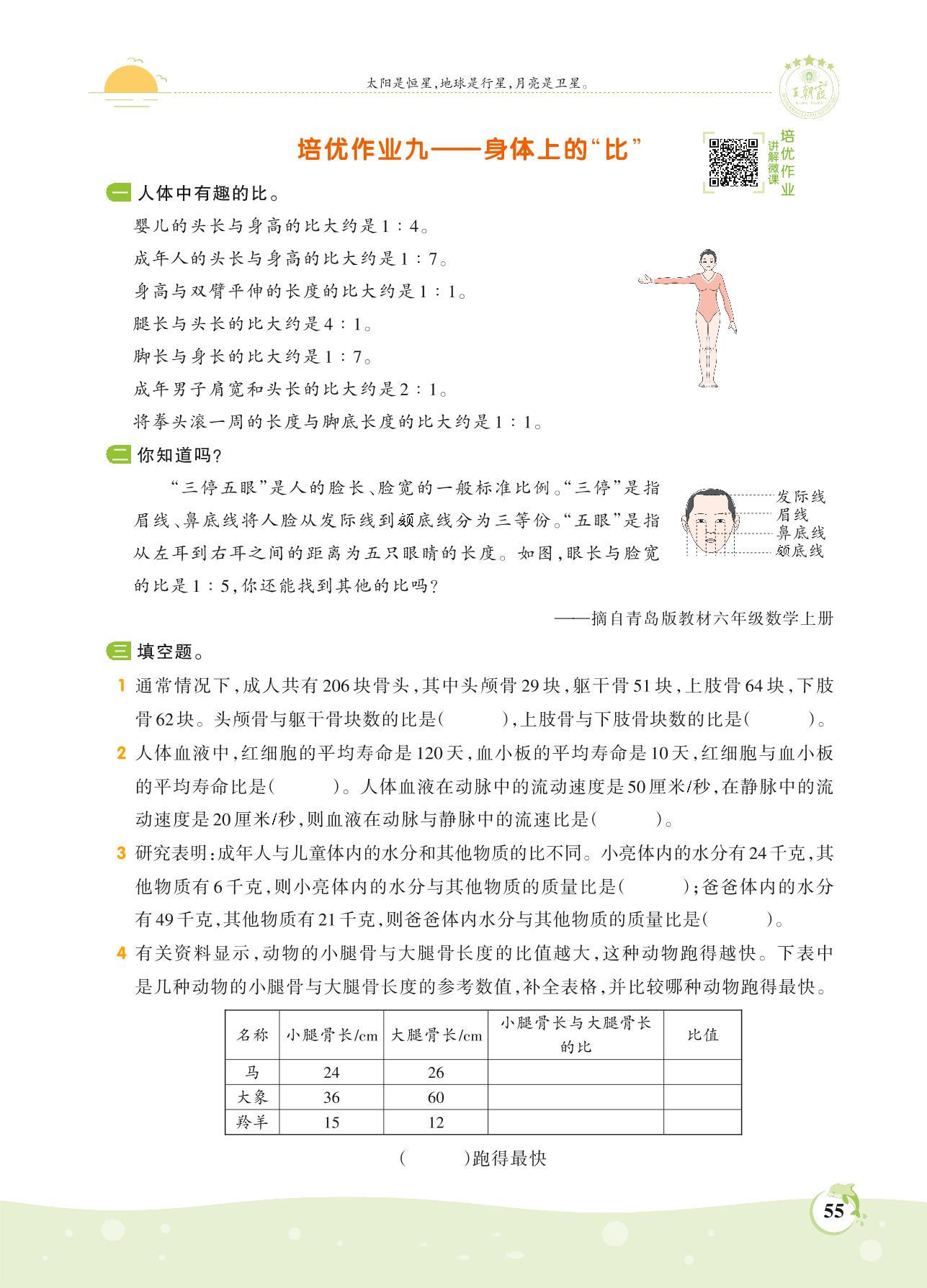 2021上册六年级数学北师版 第六单元 比的认识——培优作业九 身体上的“比”