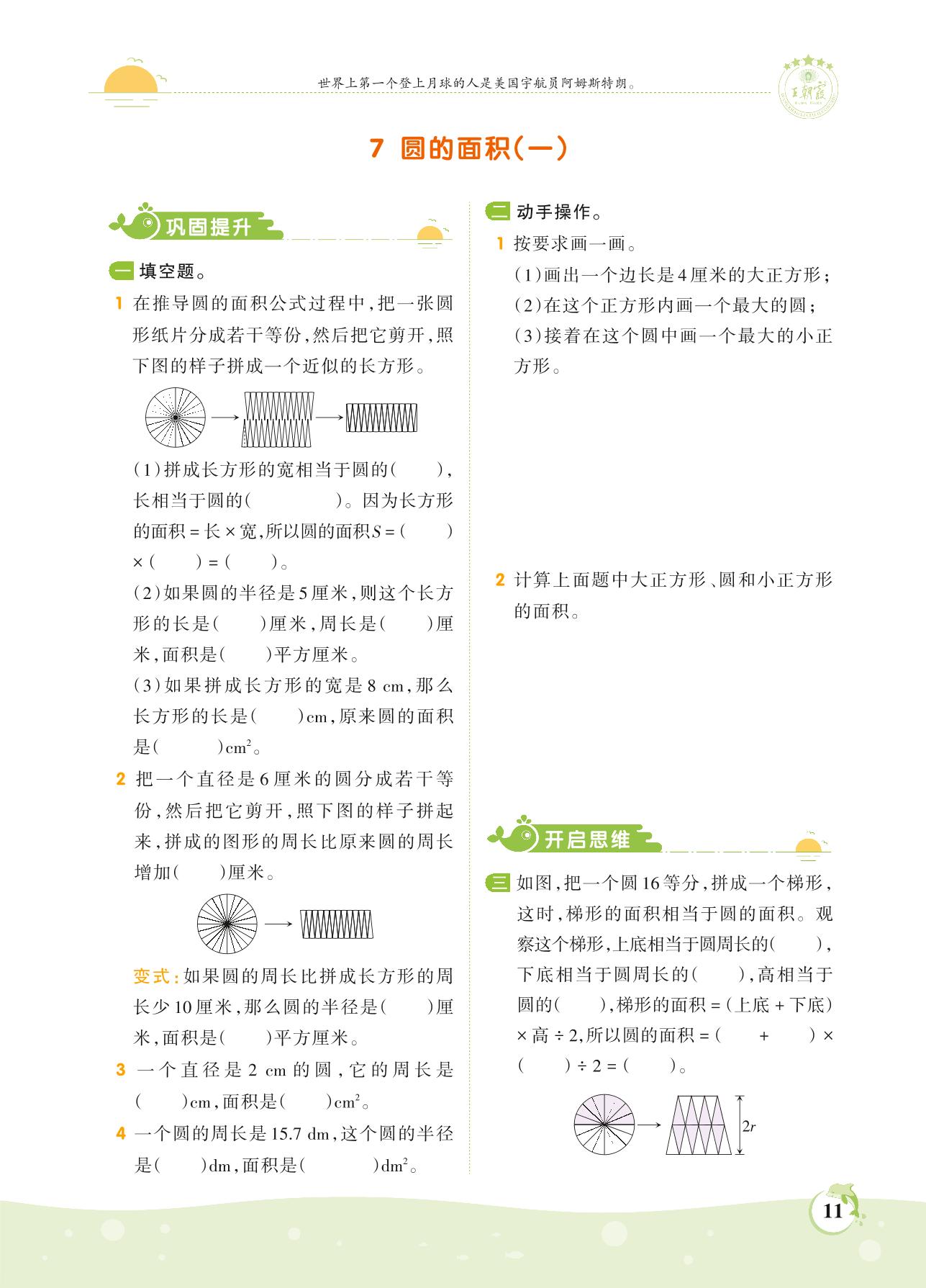 2021上册六年级数学北师版 第一单元 圆——7 圆的面积(一)