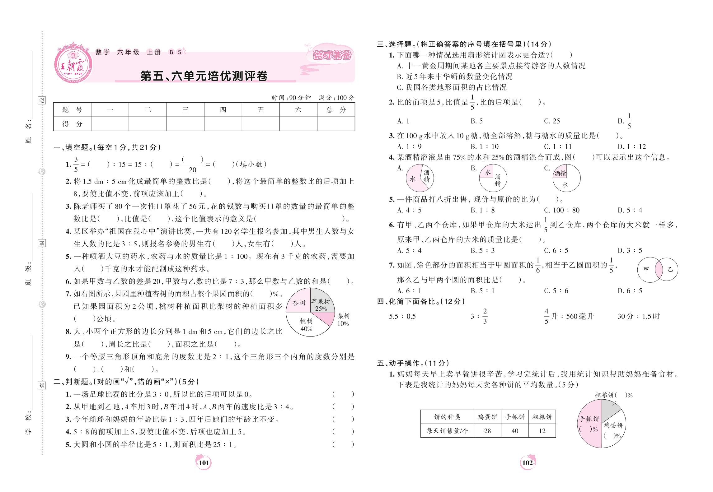 2021上册六年级数学北师版 第五、六单元培优测评卷