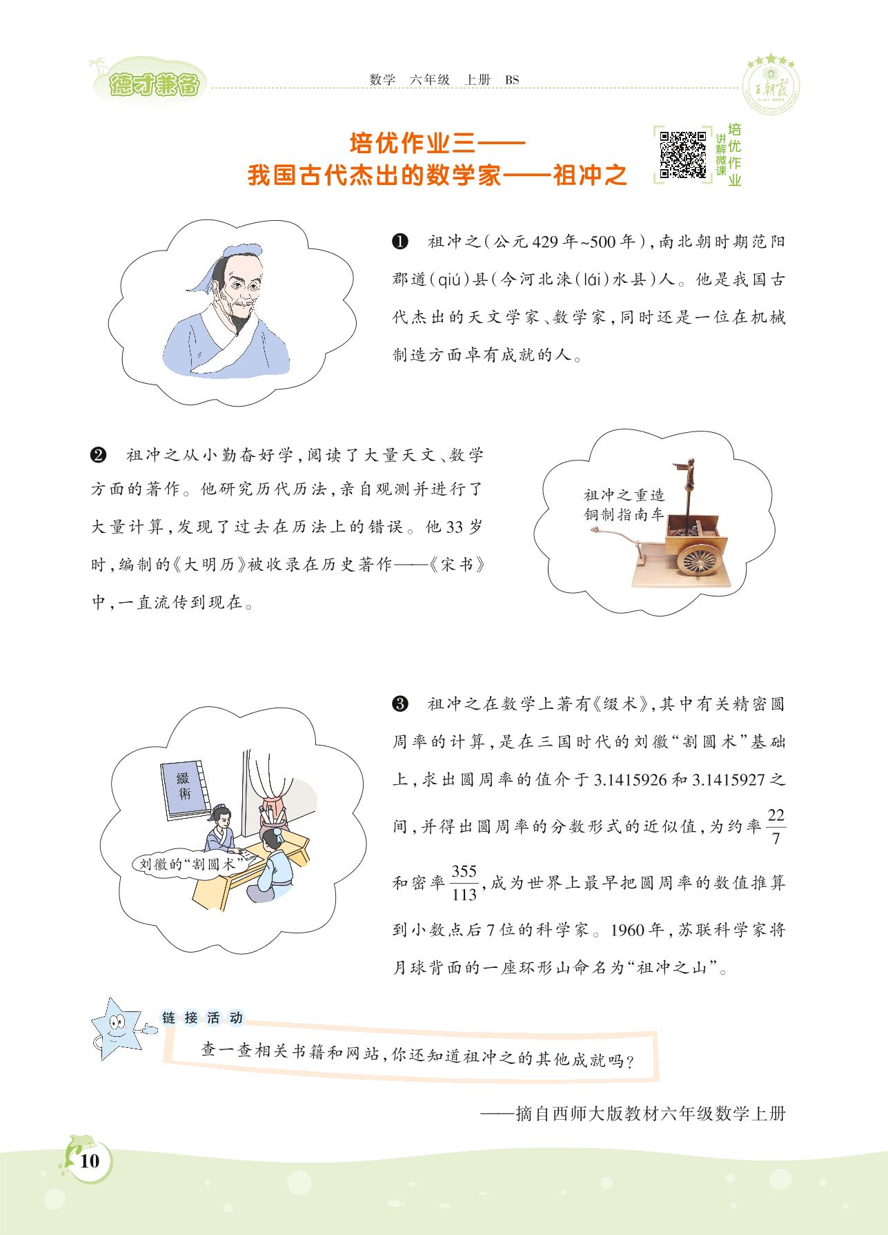 2021上册六年级数学北师版 第一单元 圆——培优作业三 我国古代杰出的数学家 祖冲之