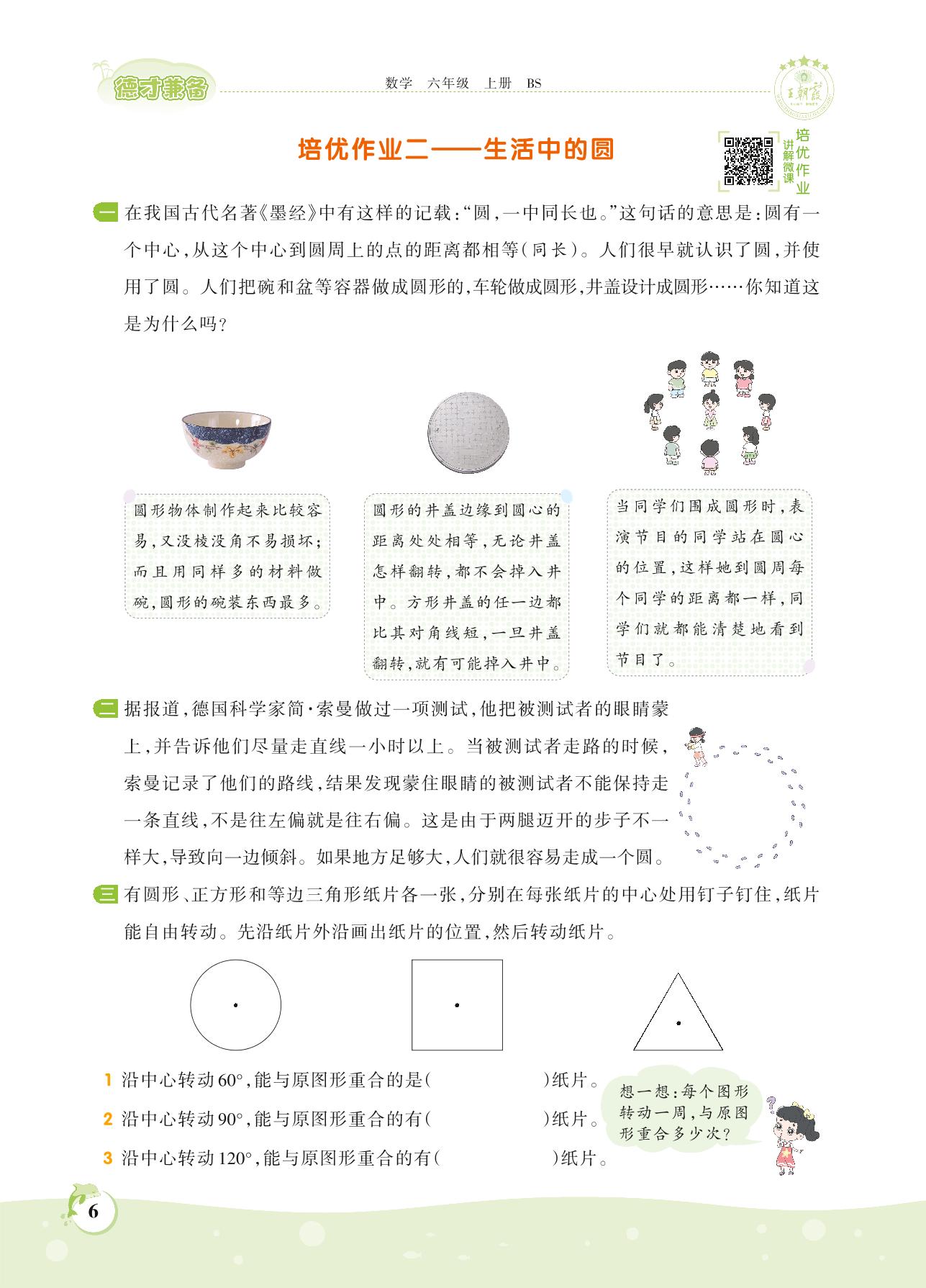 2021上册六年级数学北师版 第一单元 圆——培优作业二 生活中的圆