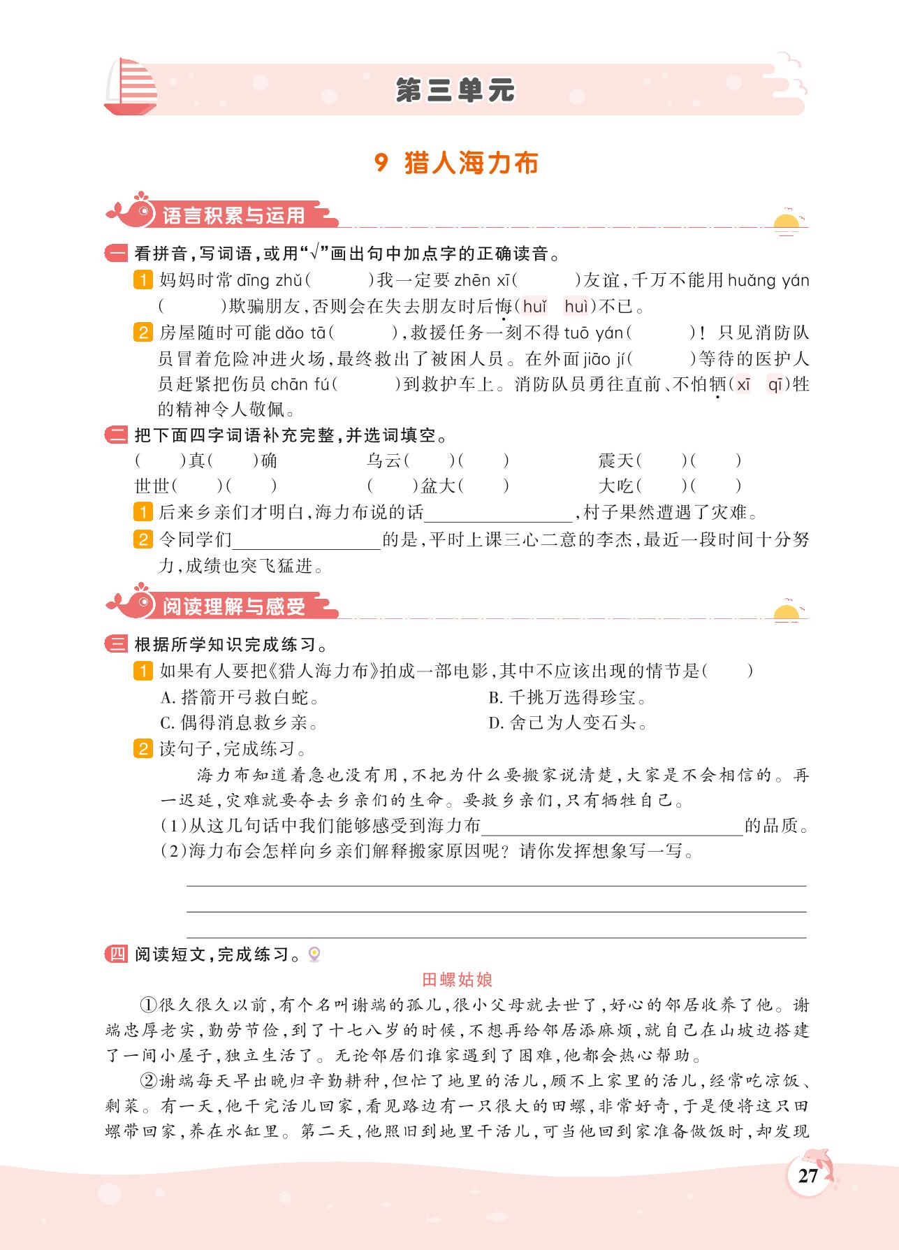 2021上册五年级语文人教版 第三单元——9 猎人海力布