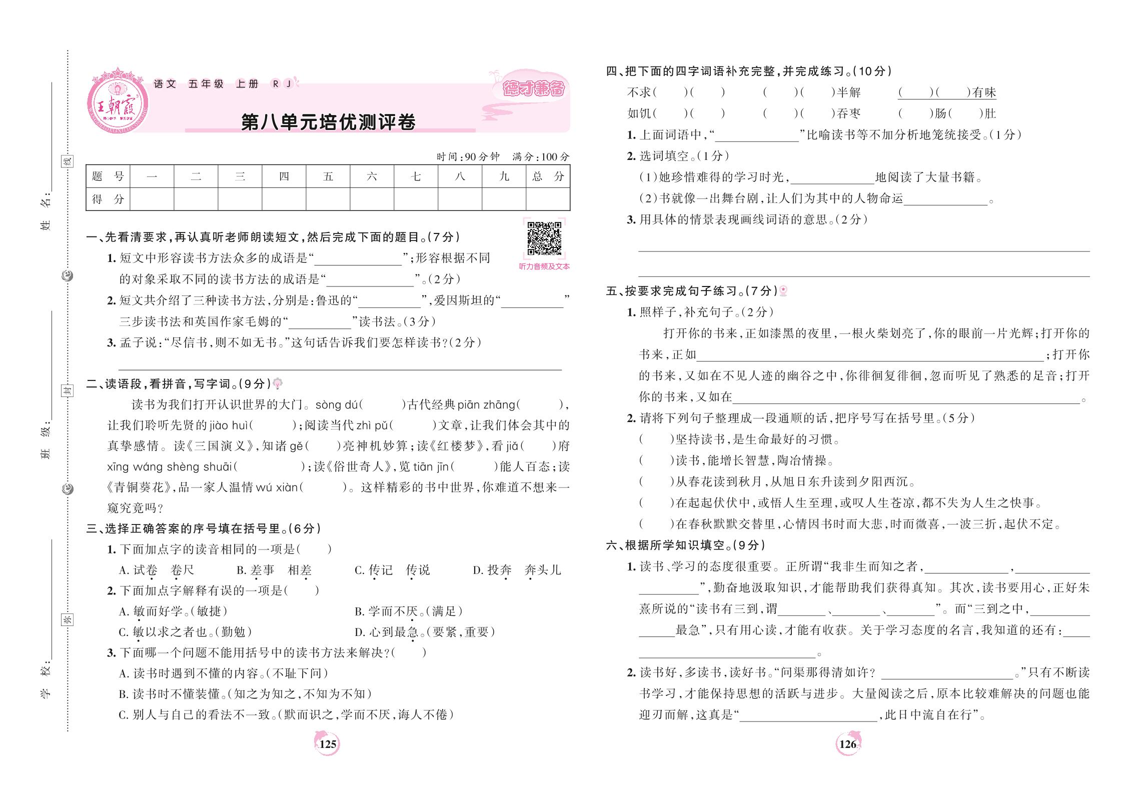 五年级语文人教版上册单元卷