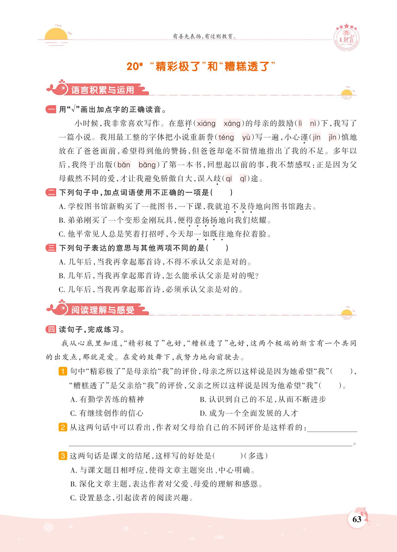 2021上册五年级语文人教版 第六单元——20 “精彩极了”和“糟糕透了”
