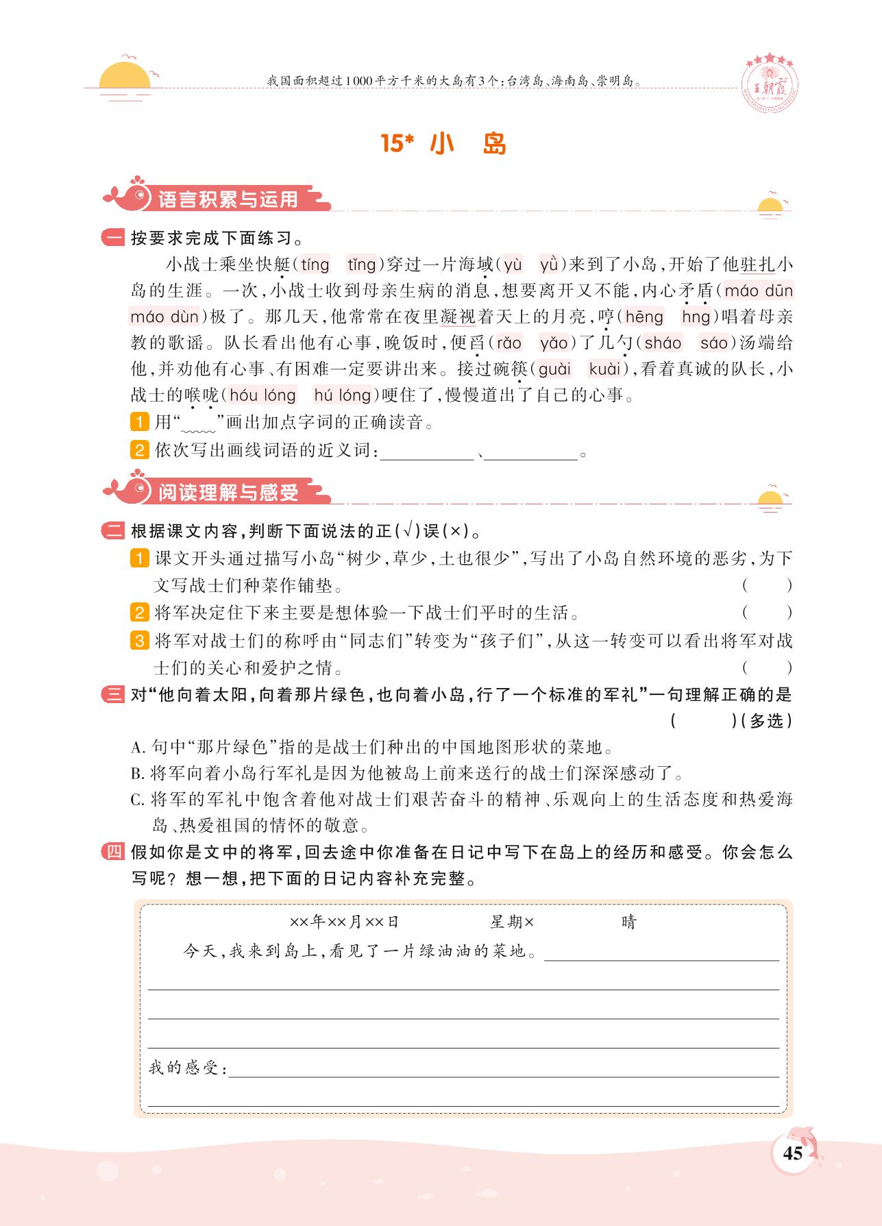 2021上册五年级语文人教版 第四单元——15 小岛