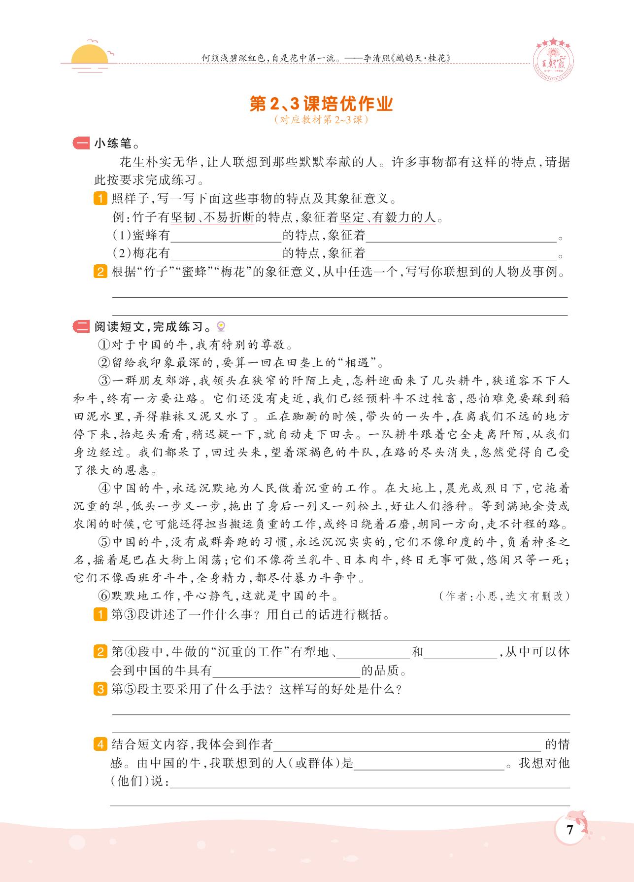 2021上册五年级语文人教版 第一单元——第2、3课培优作业