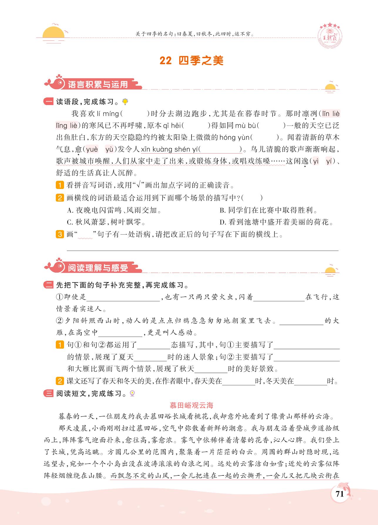 2021上册五年级语文人教版 第七单元——22 四季之美