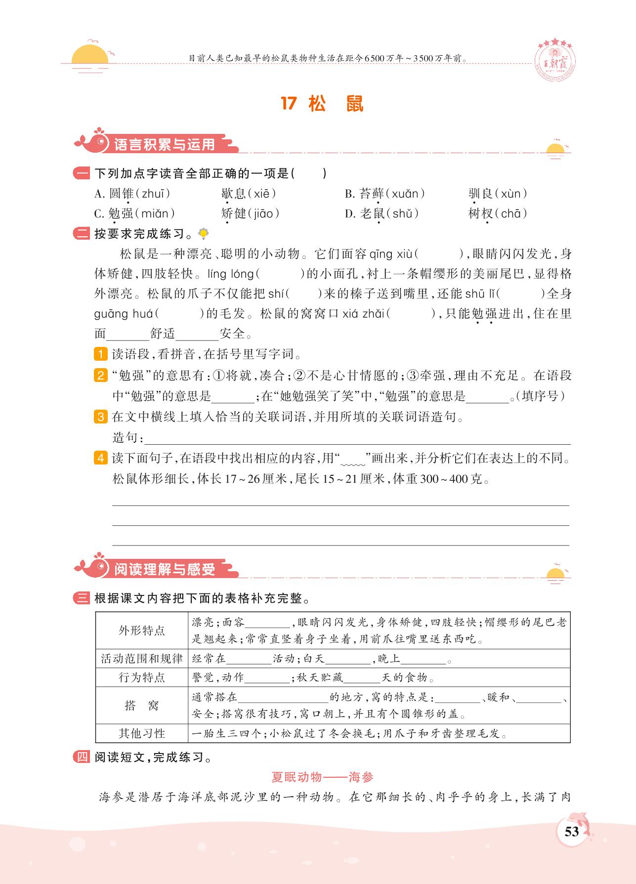 2021上册五年级语文人教版 第五单元——17 松鼠