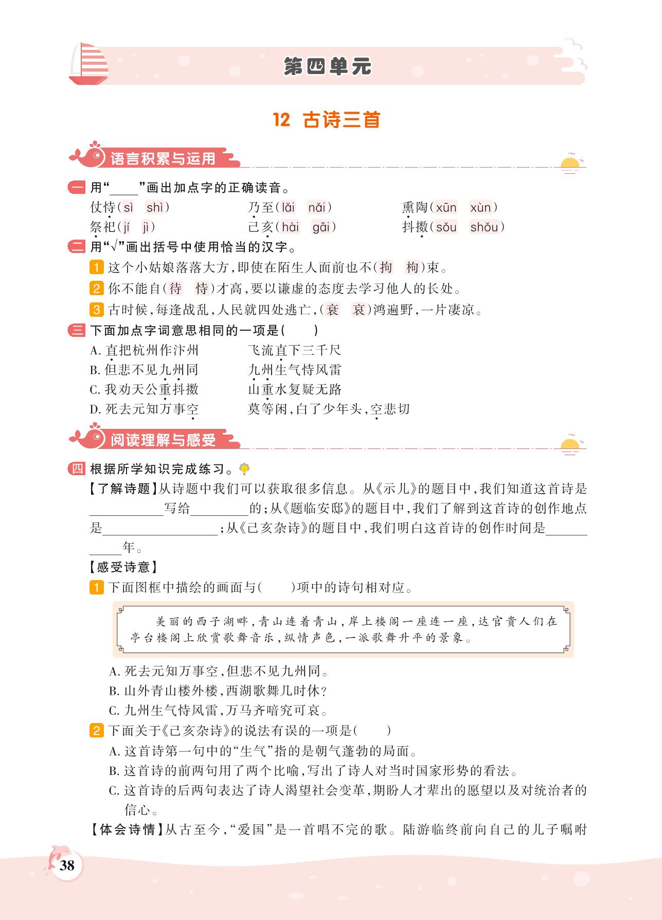 2021上册五年级语文人教版 第四单元——12 古诗三首