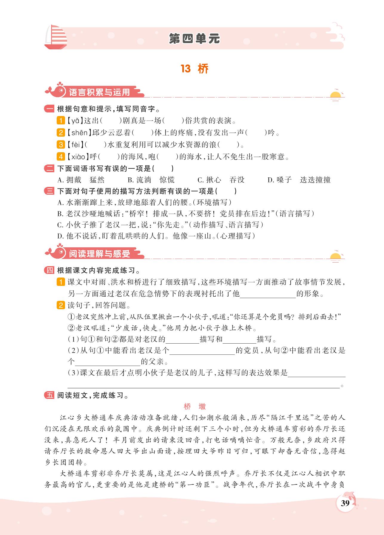 2021上册六年级语文人教版 第四单元——13 桥