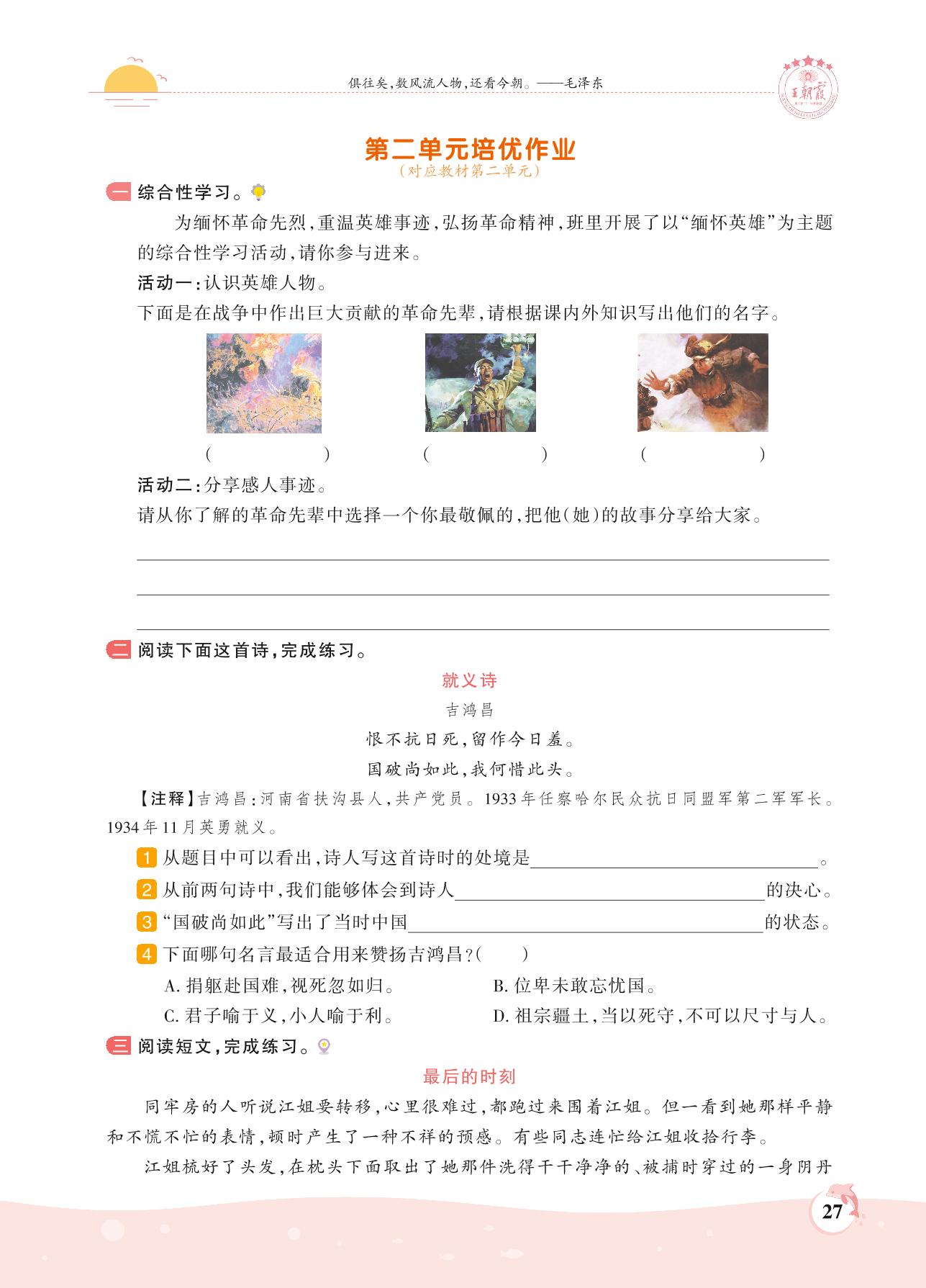 2021上册六年级语文人教版 第二单元培优作业