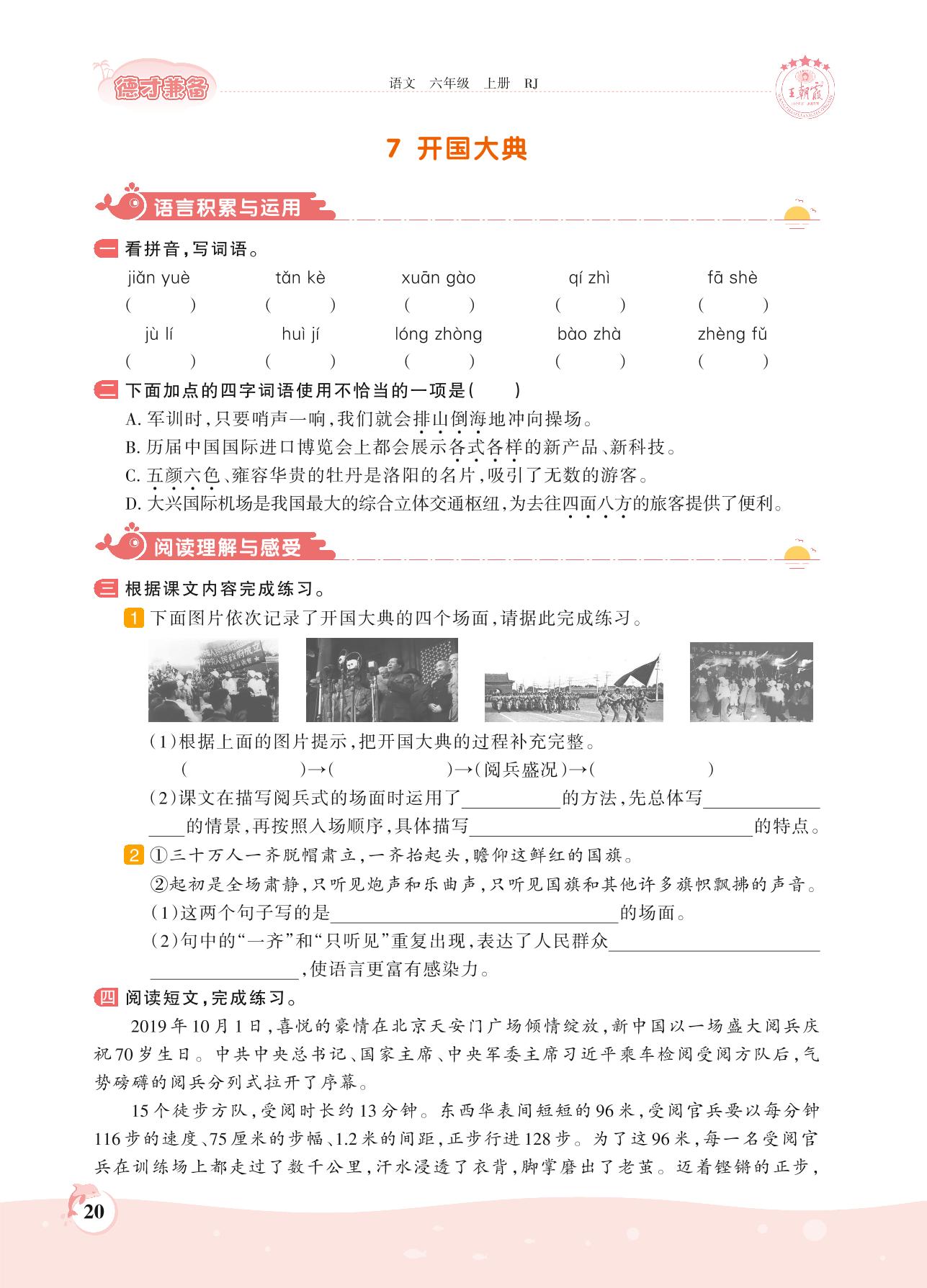2021上册六年级语文人教版 第二单元——7 开国大典