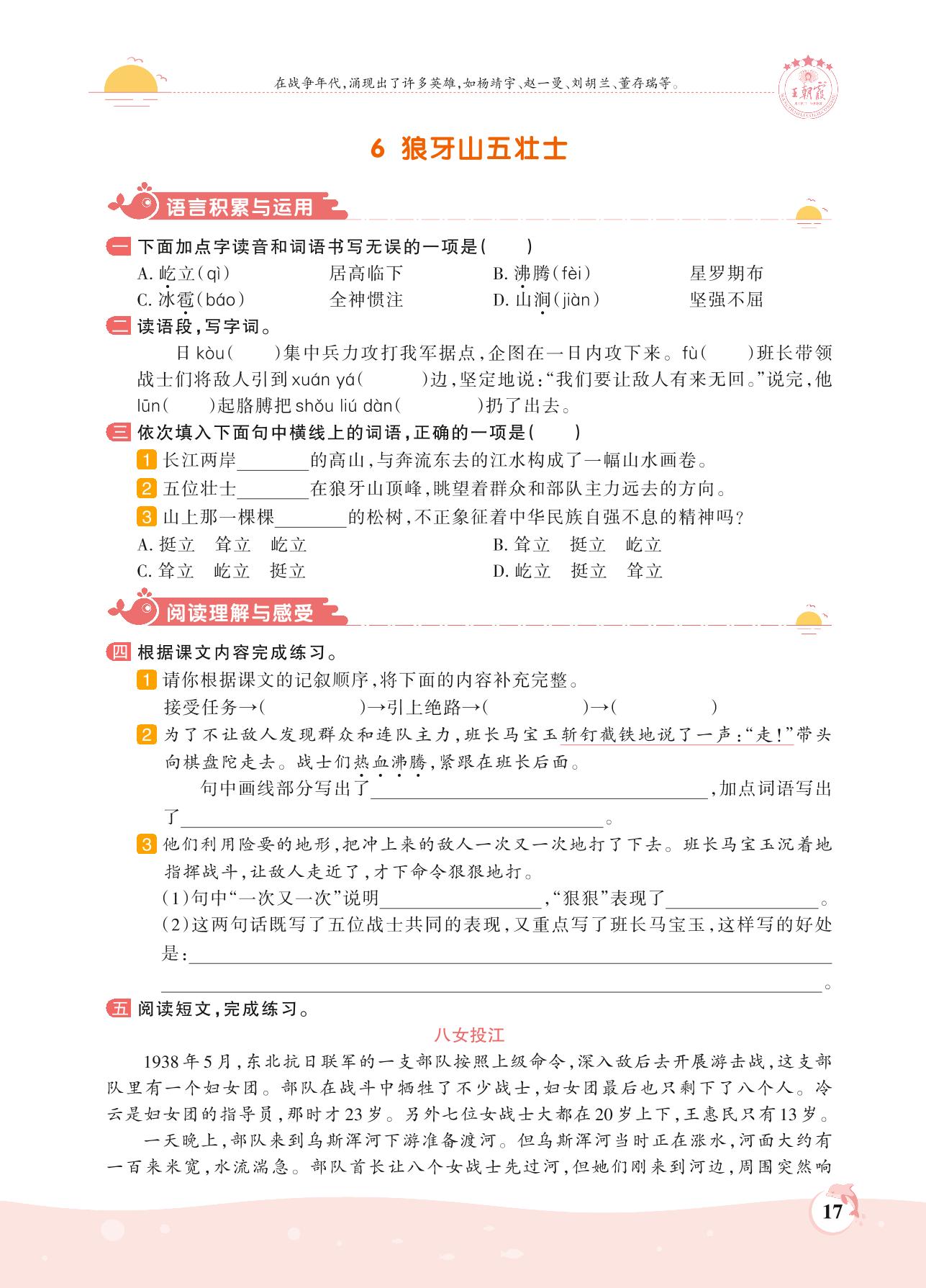 2021上册六年级语文人教版 第二单元——6 狼牙山五壮士