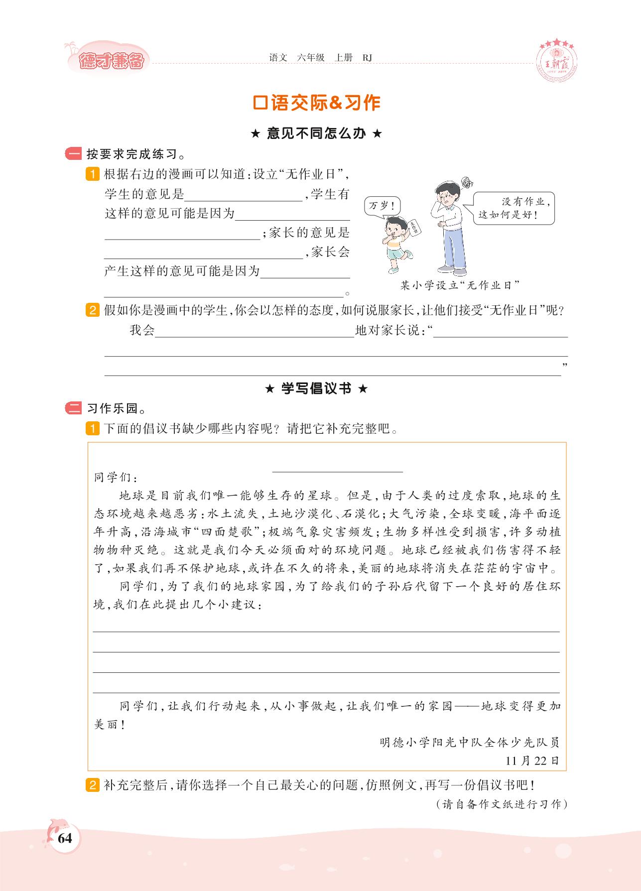 2021上册六年级语文人教版 第六单元——口语交际&习作