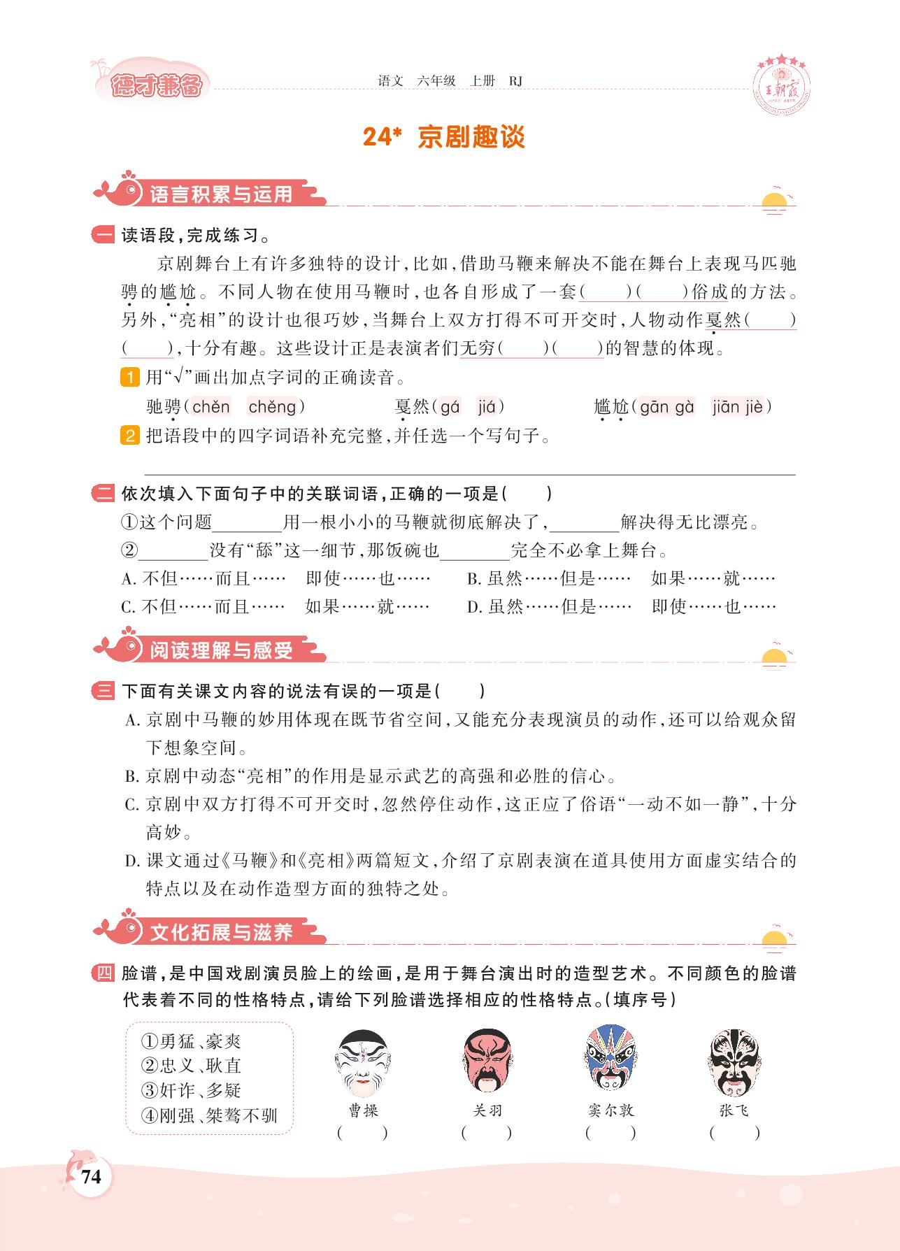 2021上册六年级语文人教版 第七单元——24 京剧趣谈