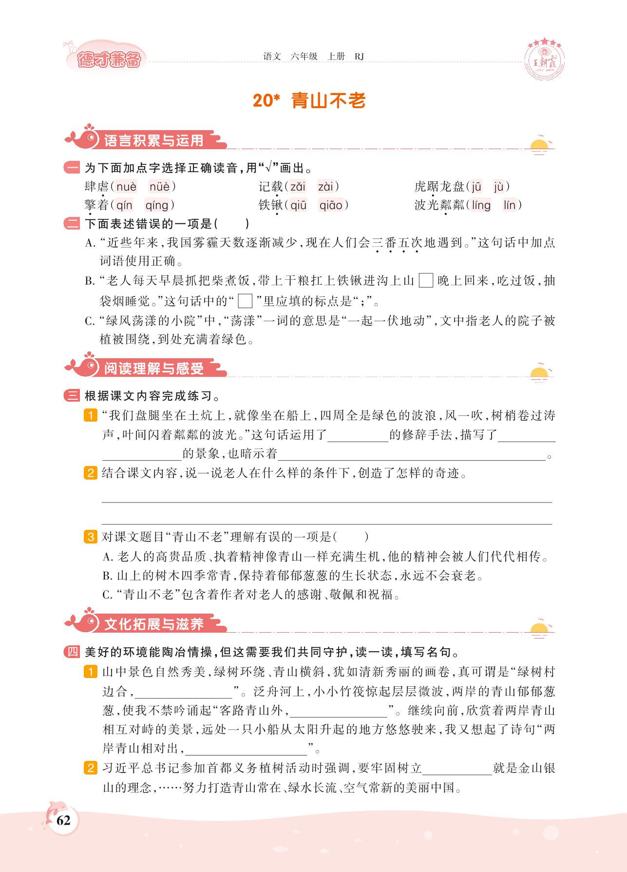 2021上册六年级语文人教版 第六单元——20 青山不老