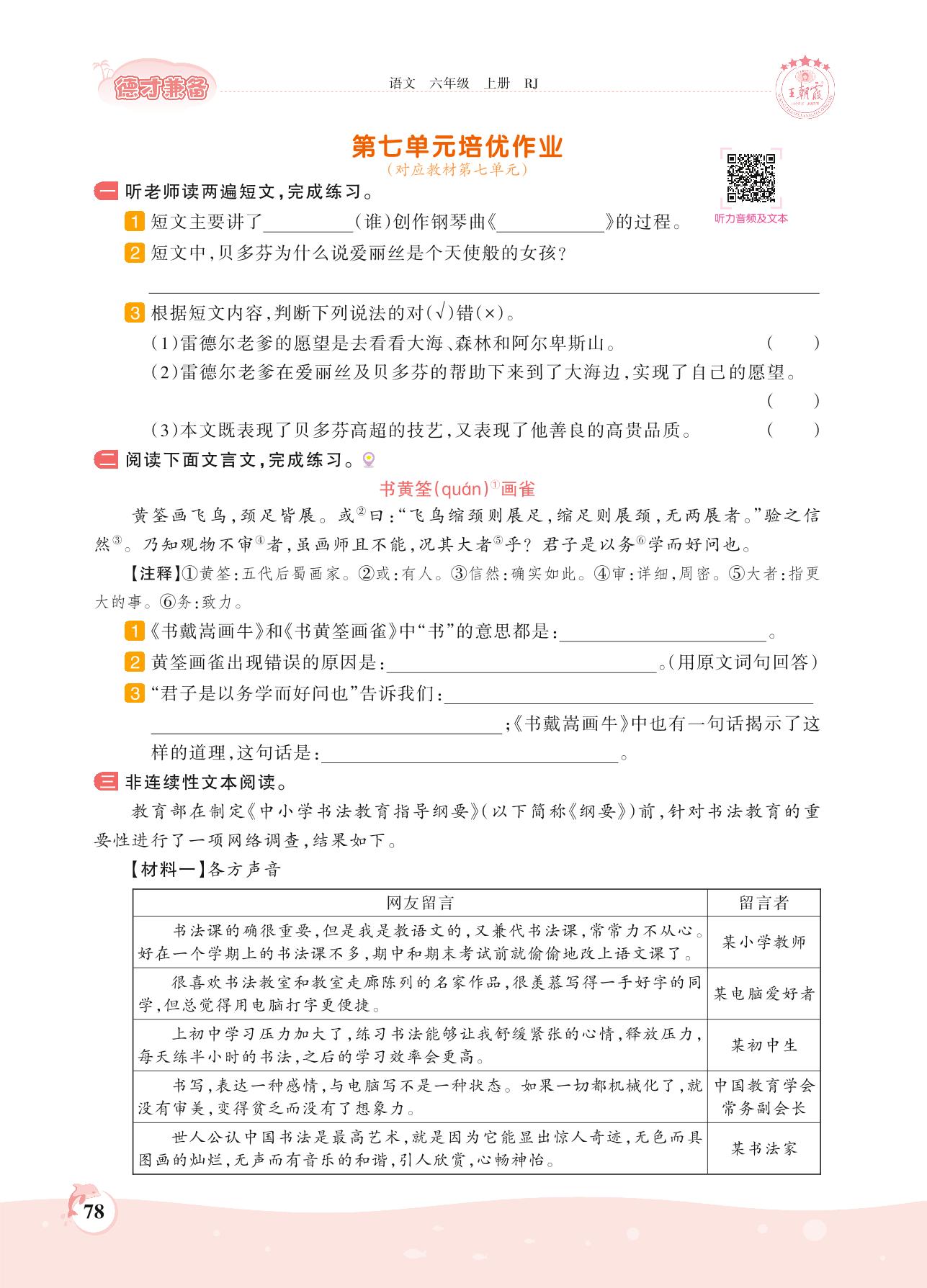 2021上册六年级语文人教版 第七单元培优作业