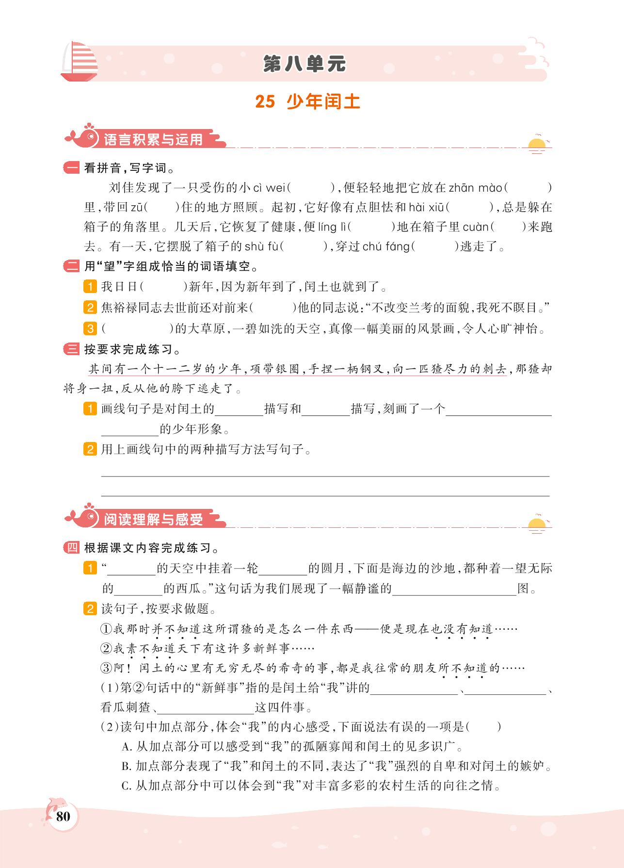 2021上册六年级语文人教版 第八单元——25 少年闰土