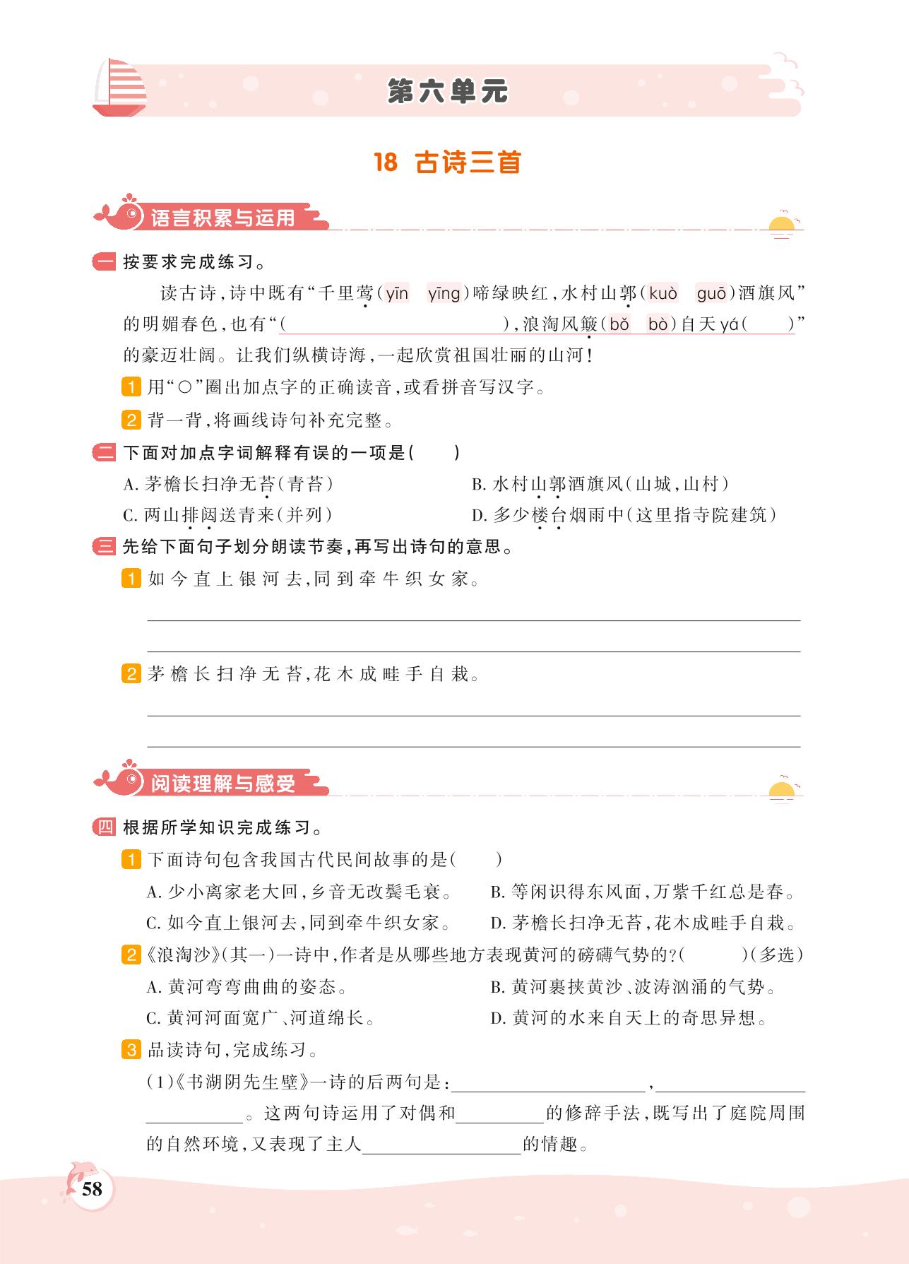 2021上册六年级语文人教版 第六单元——18 古诗三首