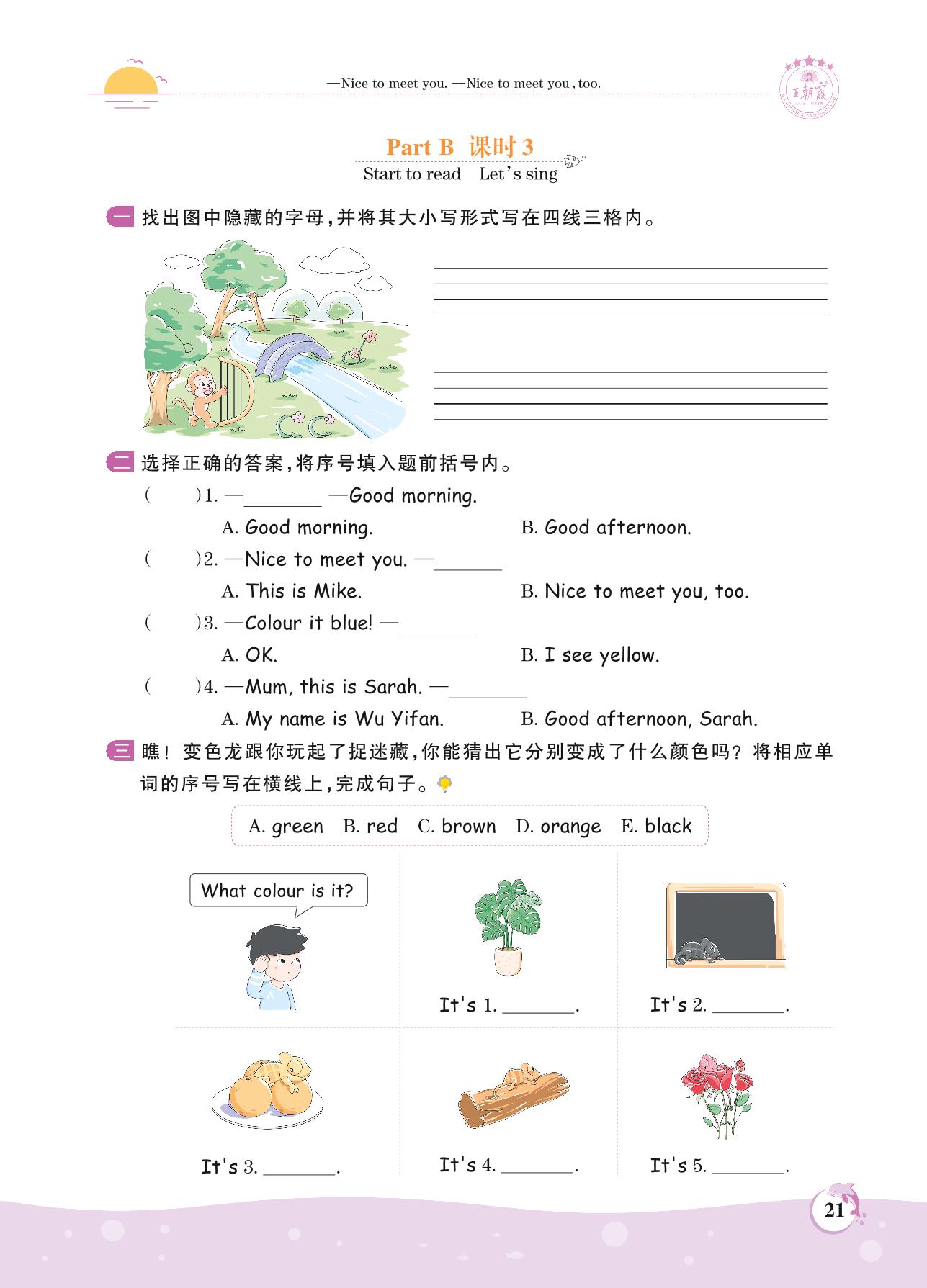 2021上册三年级英语人教PEP版 Unit 2 Part B—课时 3 Start to read Let’s sing