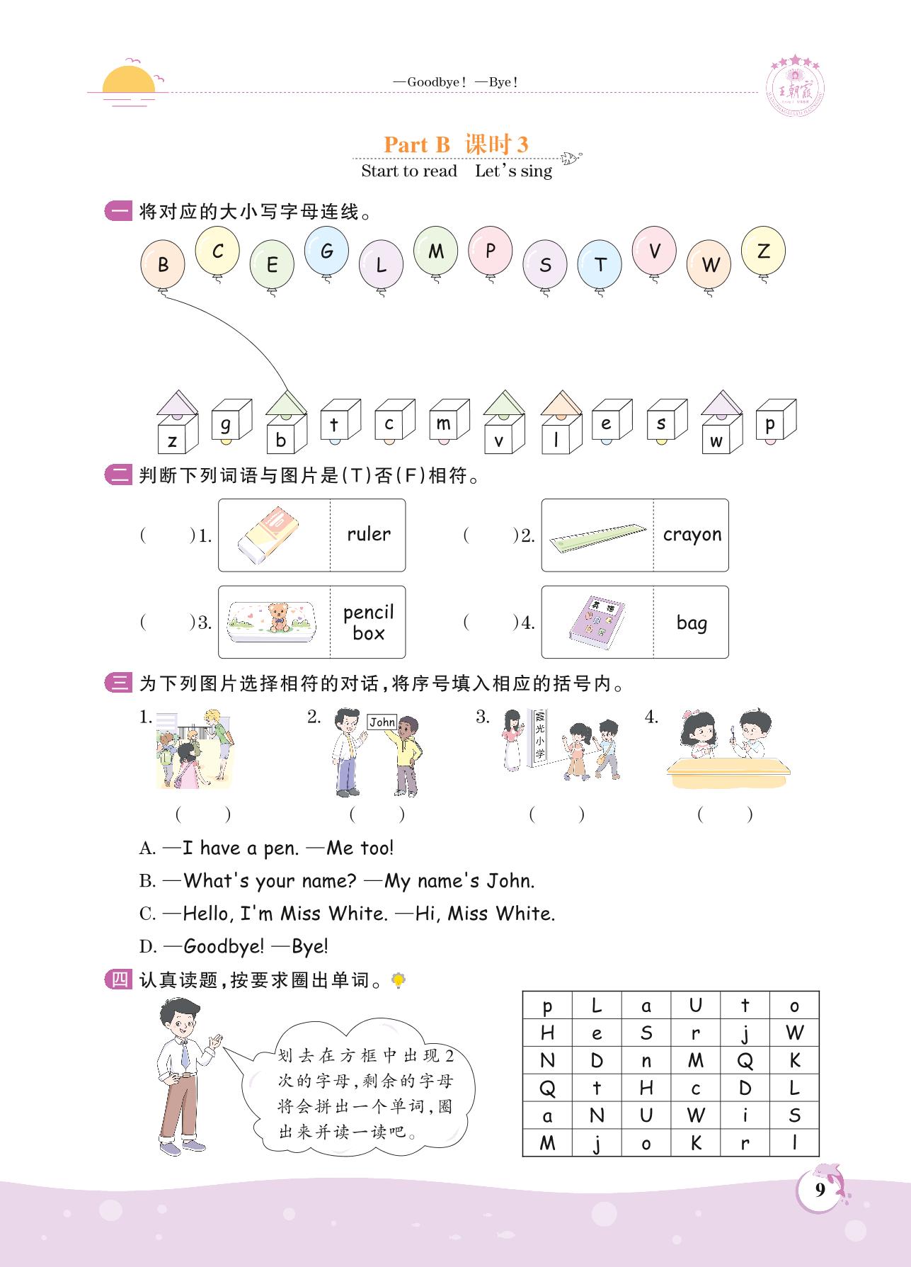 2021上册三年级英语人教PEP版 Unit 1 Part B—课时 3 Start to read Let’s sing
