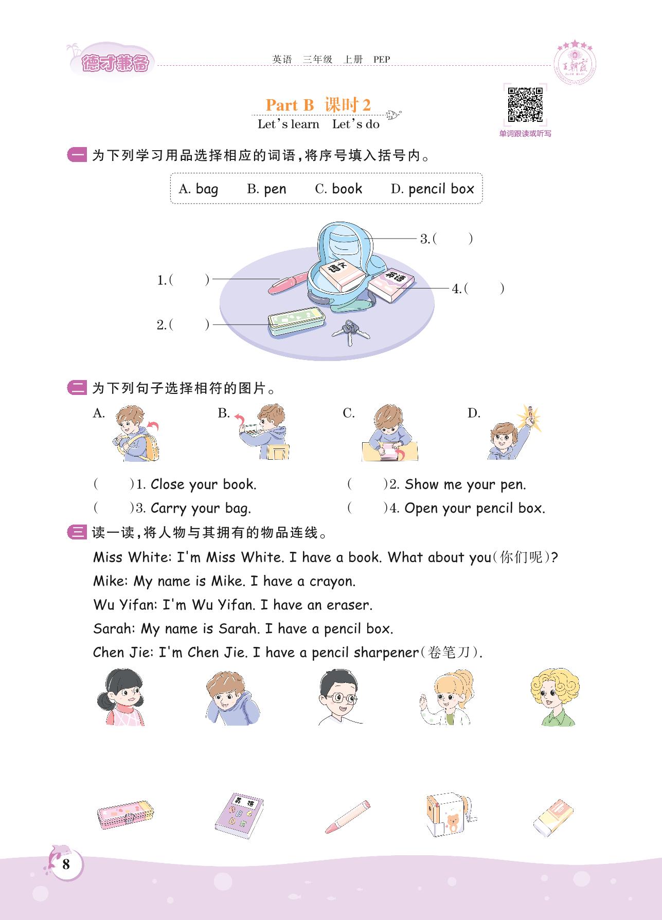 2021上册三年级英语人教PEP版 Unit 1 Part B—课时 2 Let’s learn Let’s do
