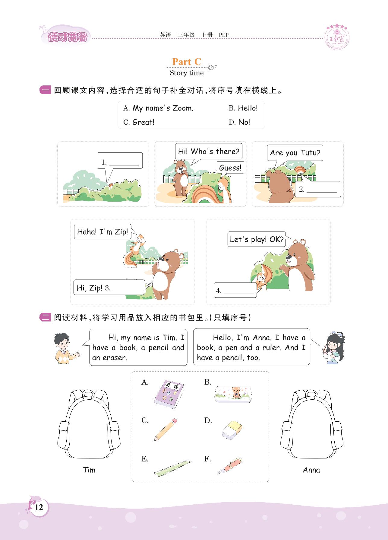2021上册三年级英语人教PEP版 Unit 1 Part C Story time