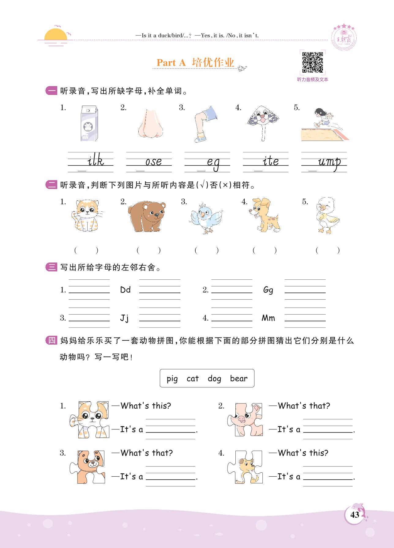2021上册三年级英语人教PEP版 Unit 4 Part A 培优作业