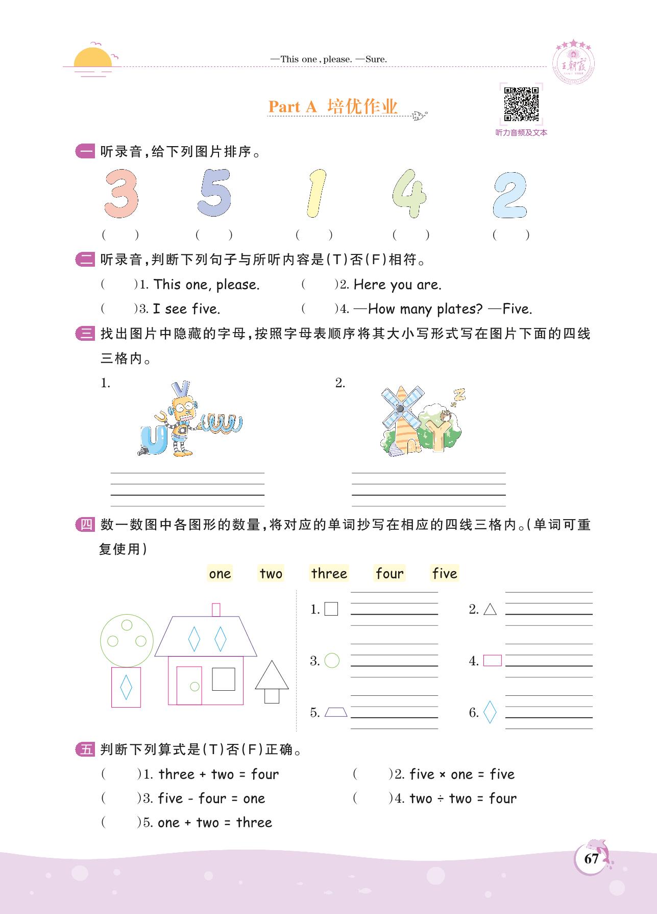 2021上册三年级英语人教PEP版 Unit 6 Part A 培优作业