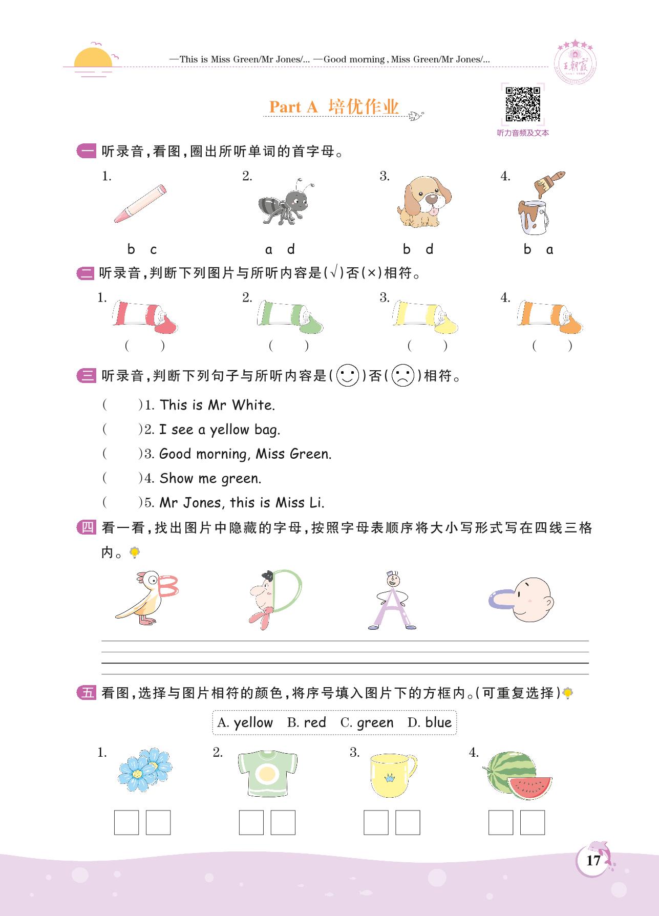 2021上册三年级英语人教PEP版 Unit 2 Part A 培优作业